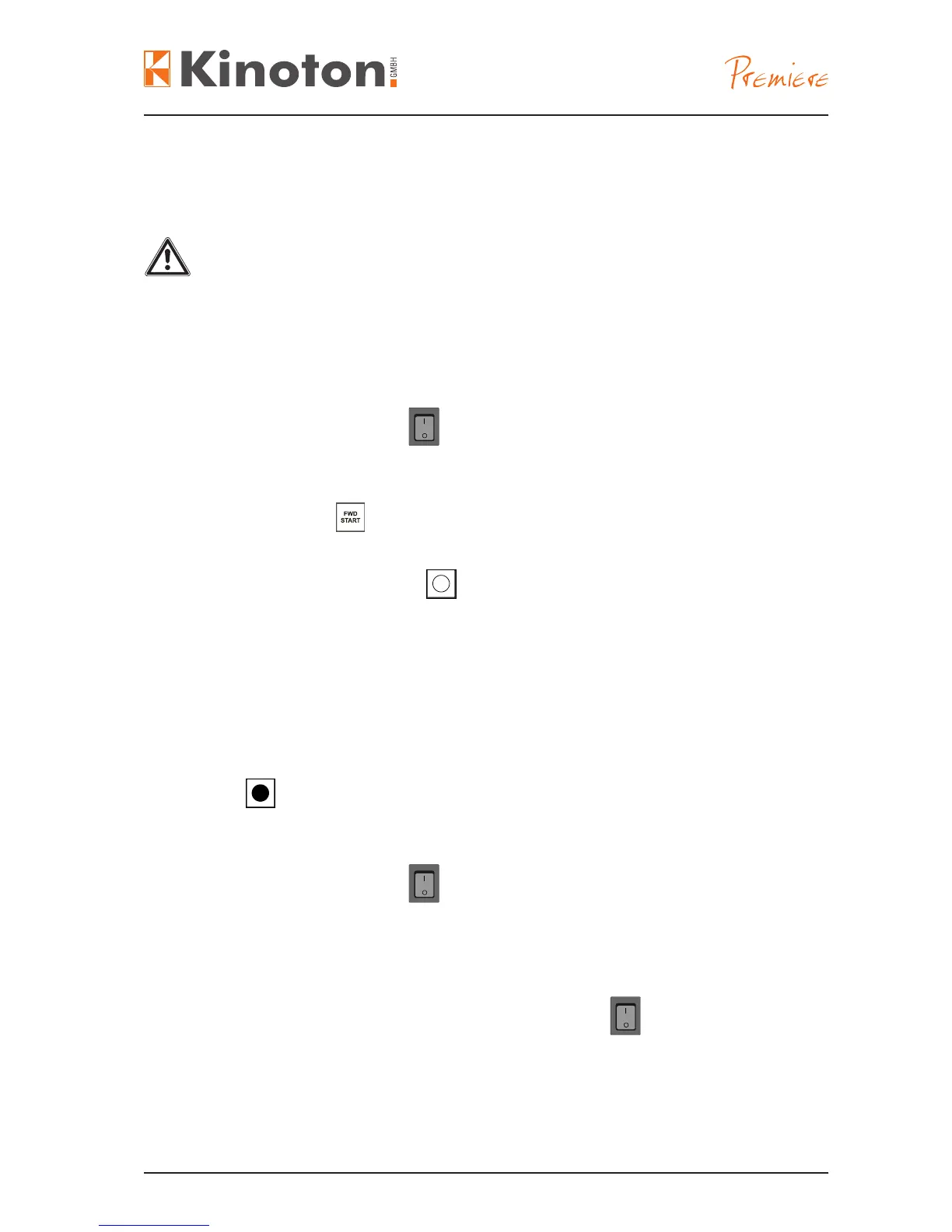 Immediate after the projector is switched on you must not manually turn the intermittent