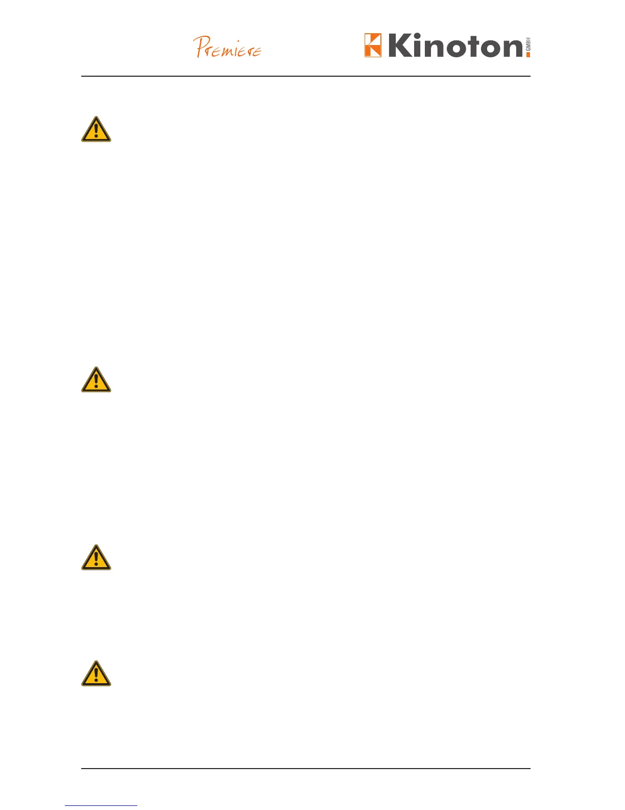 Kinoton FP 38 E Premiere - Warning Risk of Fire; Lamphouse Hazards; Broken Glass; Ultraviolet Radiation