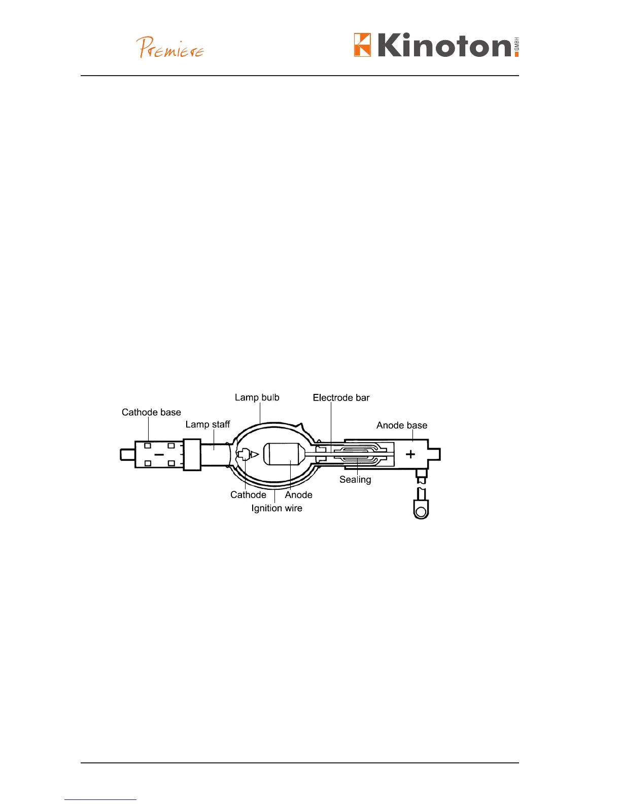 The lamp bulb out of quartz glass encloses the electrode system and the xenon gas.