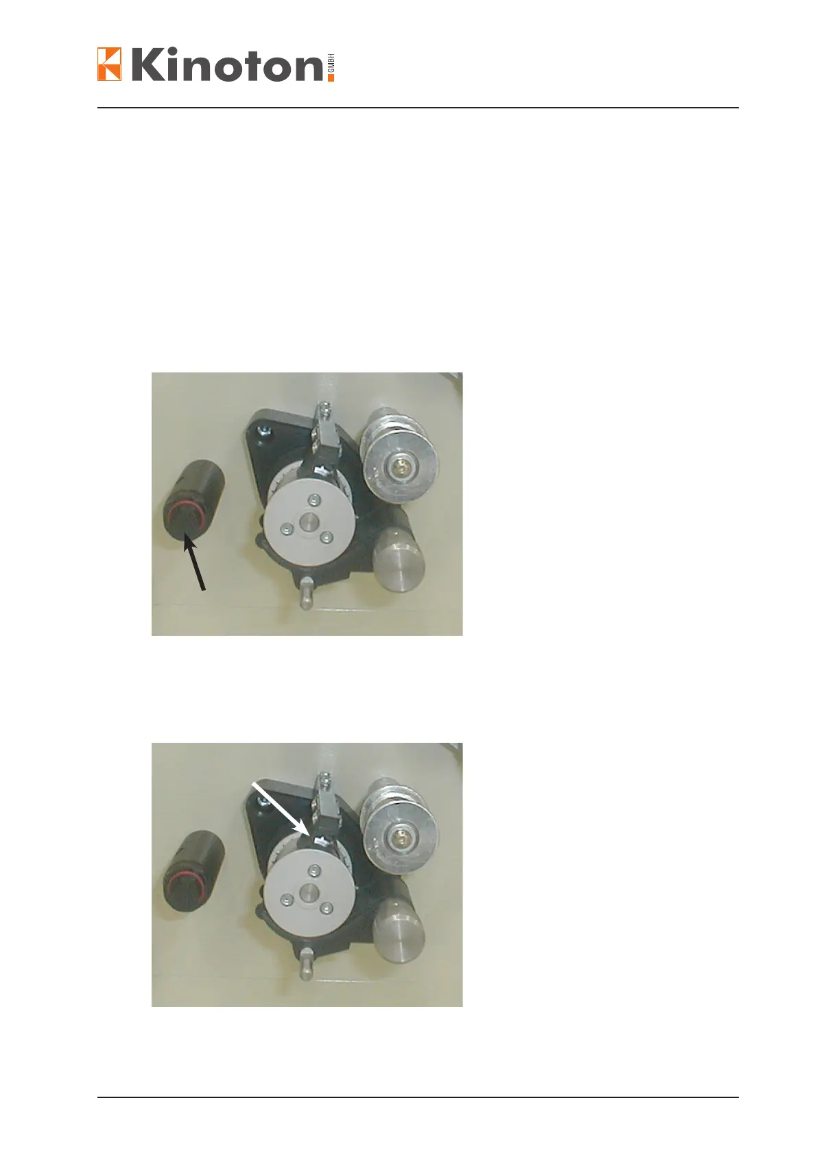 The lm stripper (arrow) prevents lm from winding around the sprocket after a lm