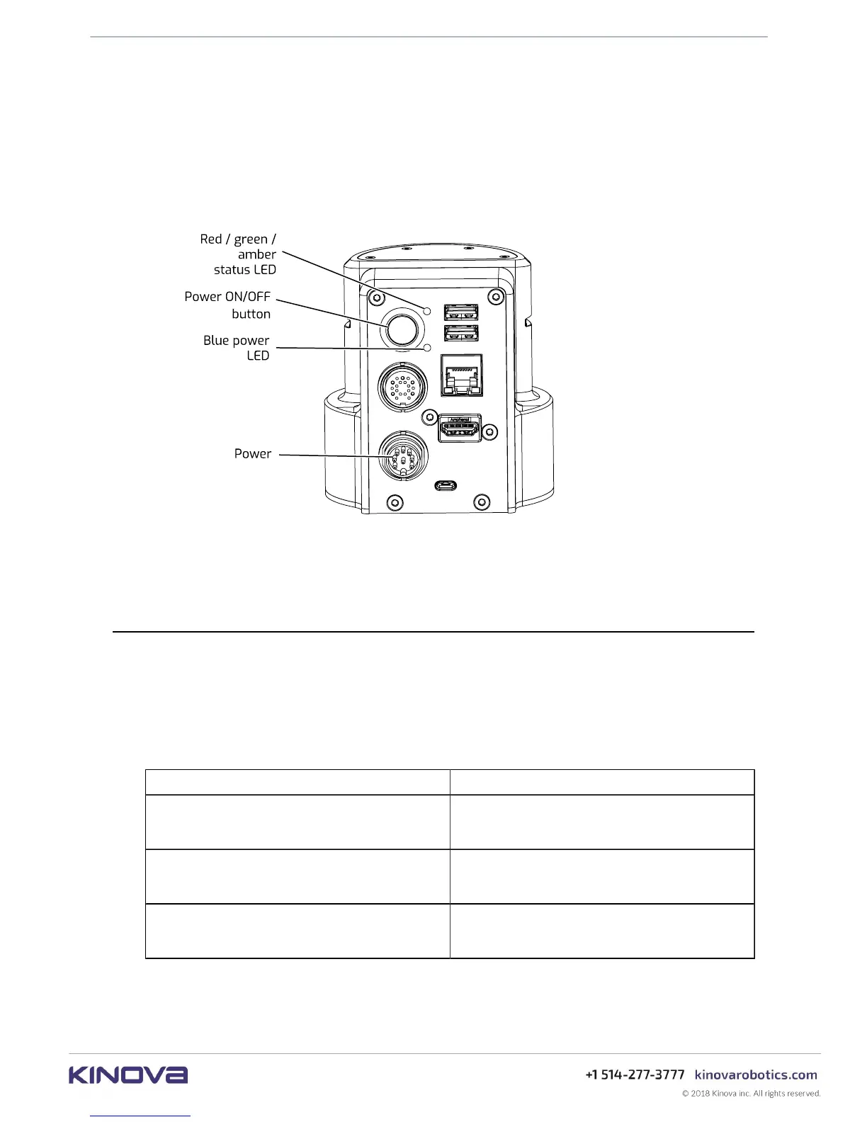 Note: When the robot is properly powered on, the blue power LED will be illuminated green.