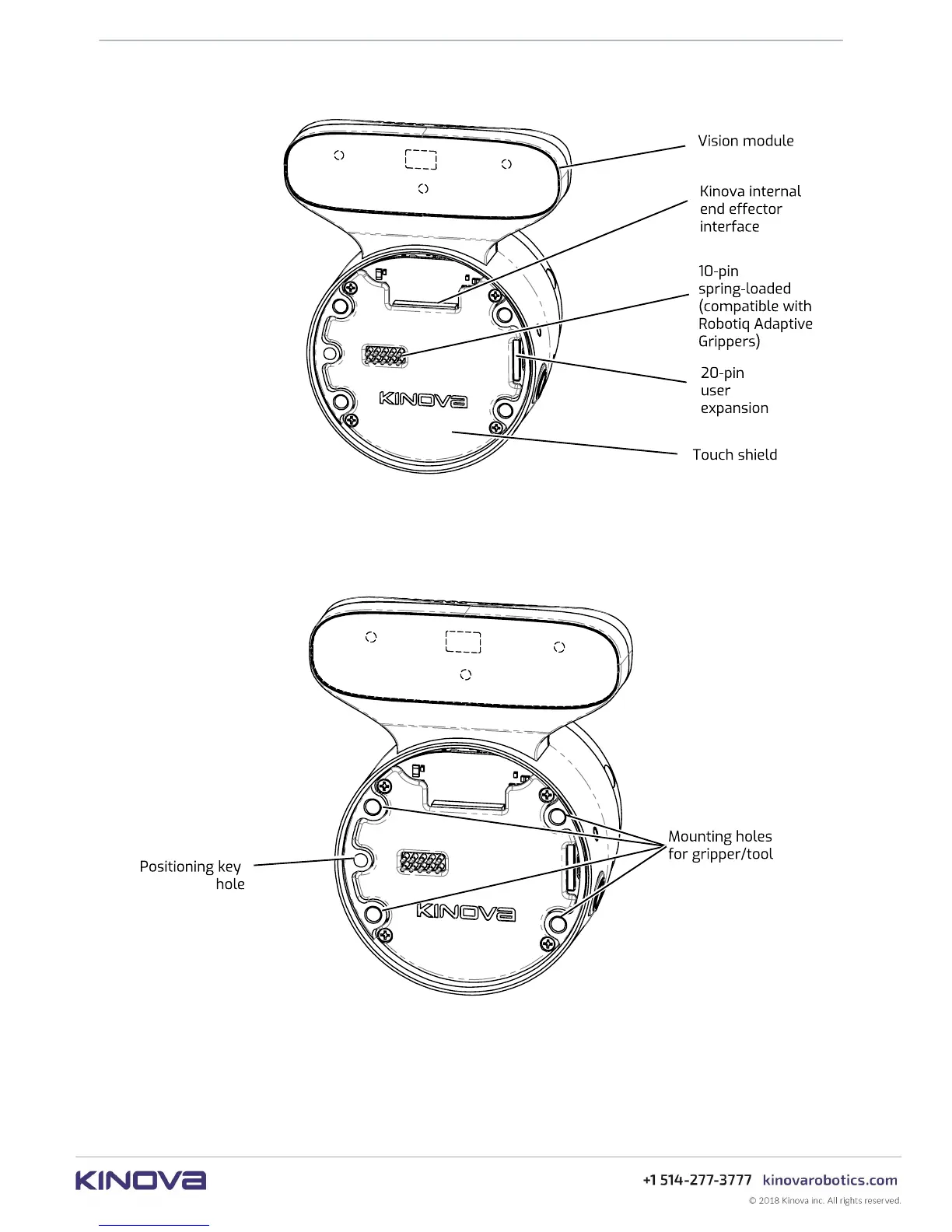 position key hole used for alignment of the end effector in the right orientation.