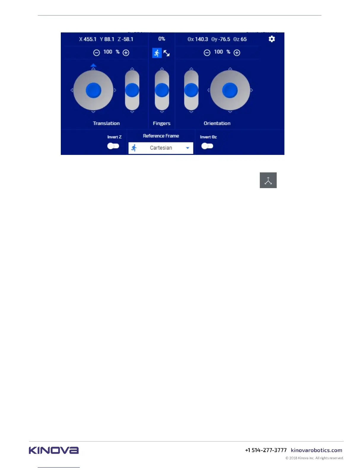 The Cartesian virtual joystick controls allow you to control the translation and orientation of