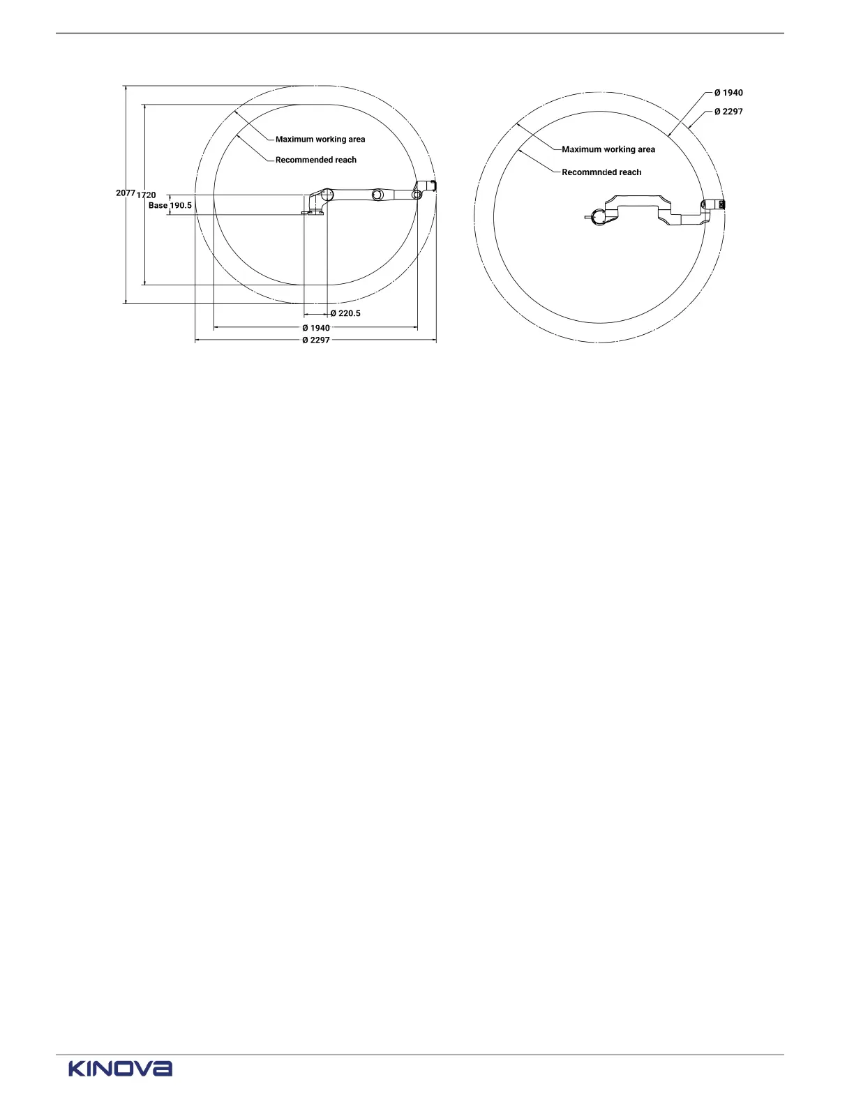 Figure 4: Recommended reach and maximum working area, vertical and horizontal