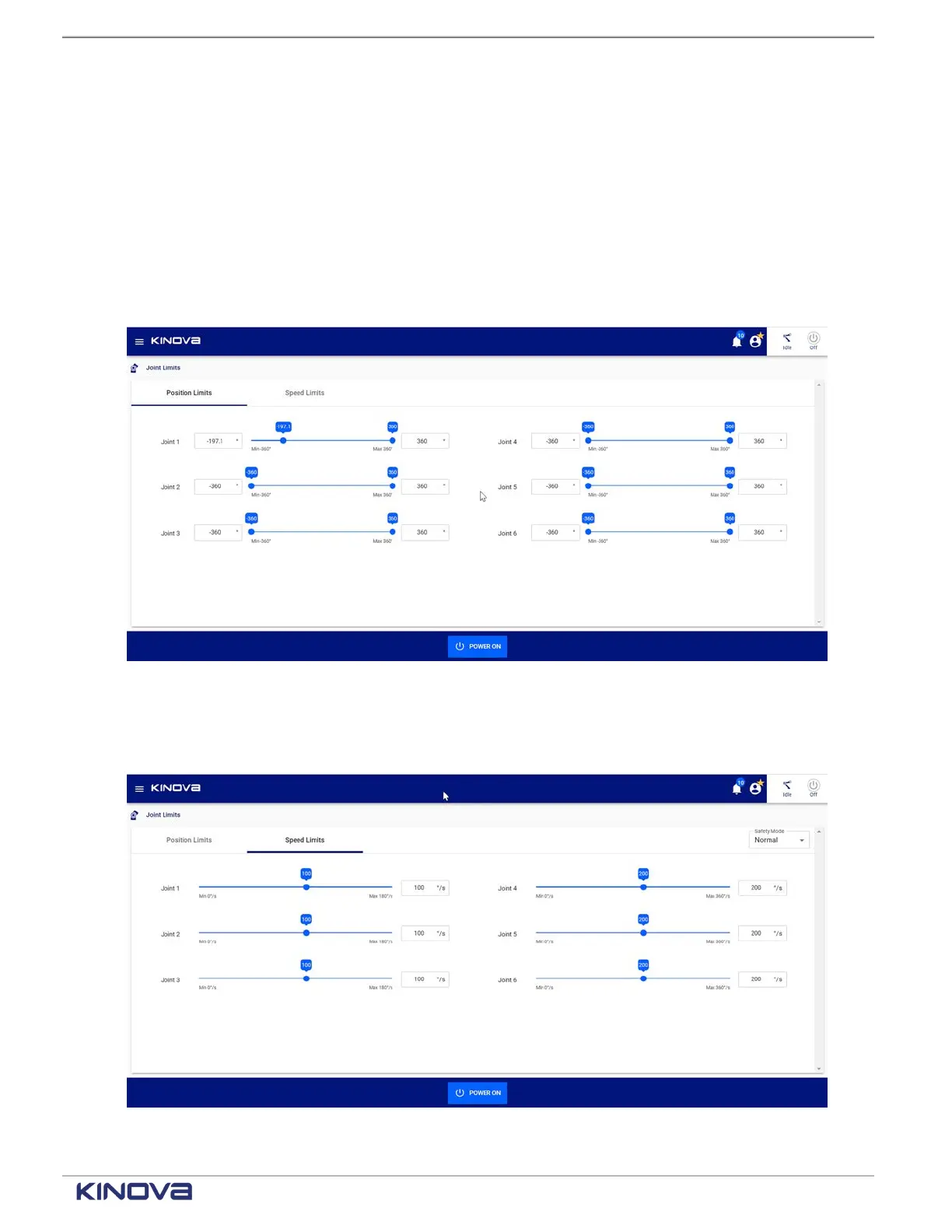 Additionally, the speed of each joint can be configured in both normal and reduced safety modes.