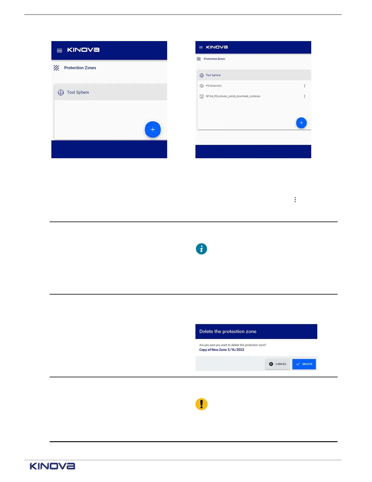 Table 49: Actions that can be performed on each protection zone from the kebab ( ) menu