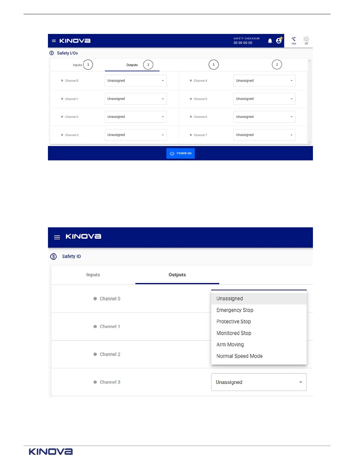 output menu. Connect Safety Output channels to external Safety monitoring devices, such as a