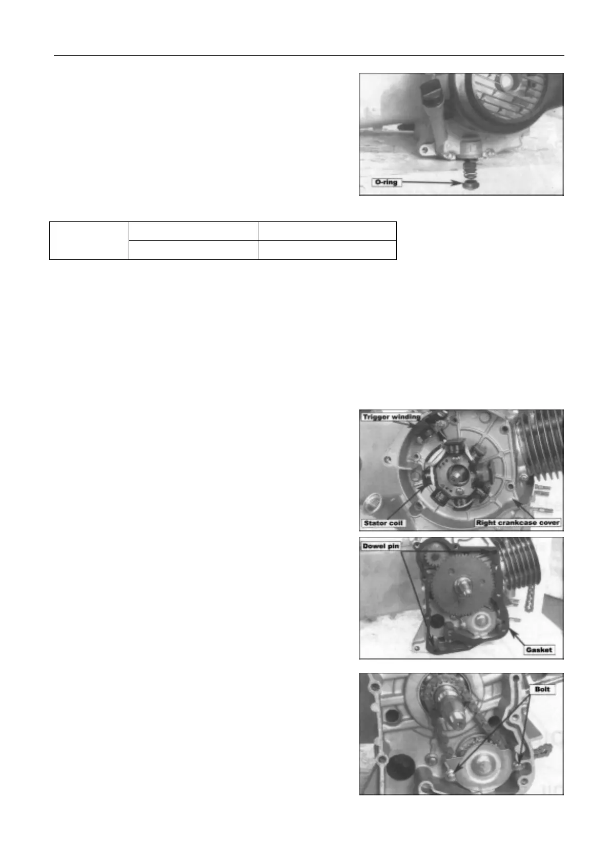 Start the engine and run several minutes in the idle position to make sure there is no oil leakage.