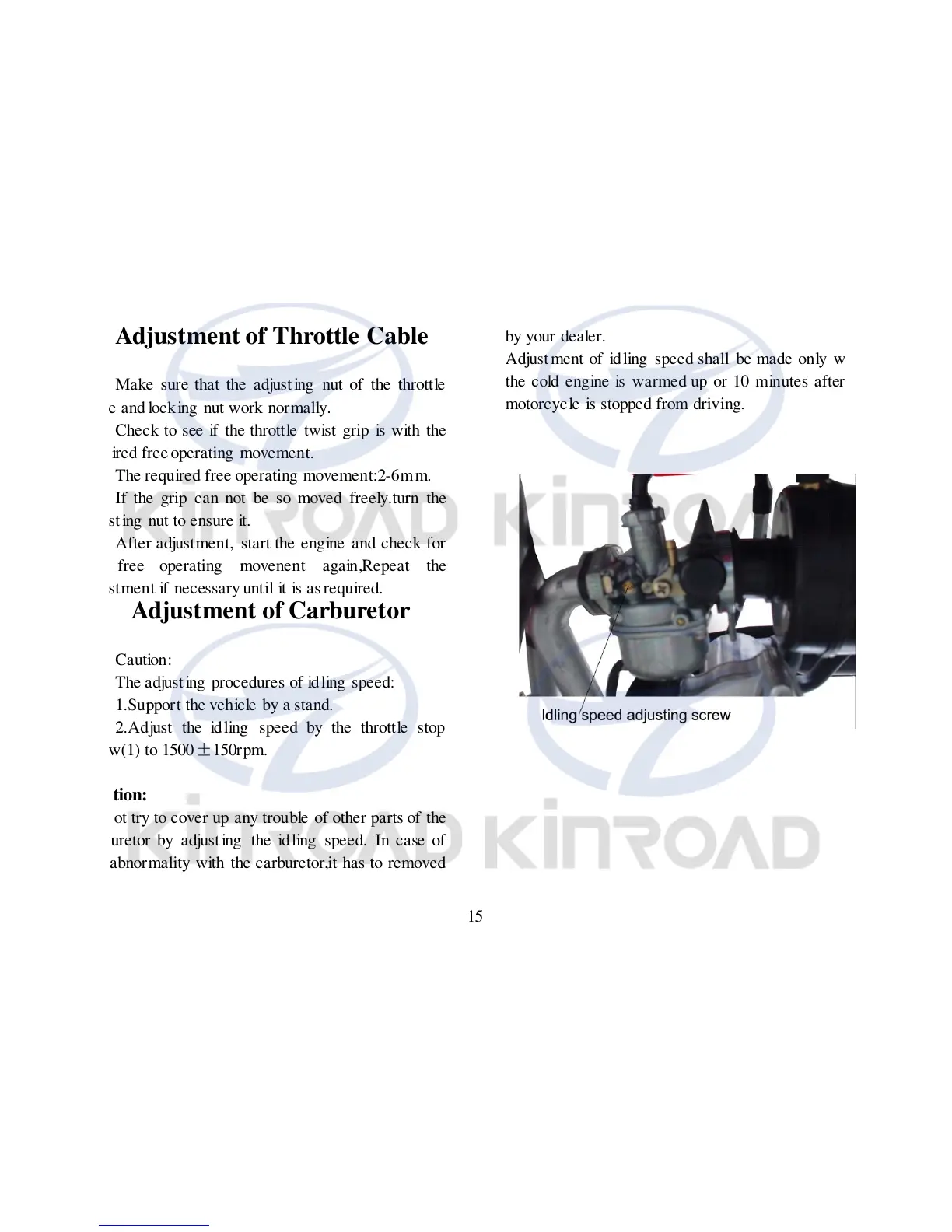 carburetor by adjusting the idling speed. In case of