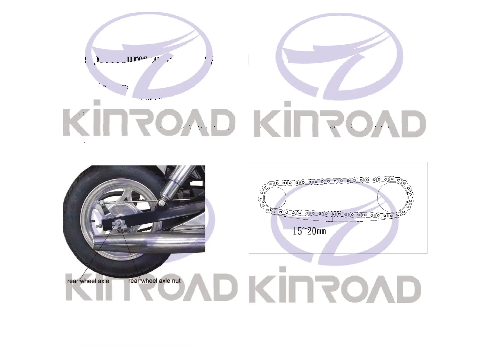 When the rear wheel axil has moved to the back adjust ing limit, if excess loose be cause of wearing to the