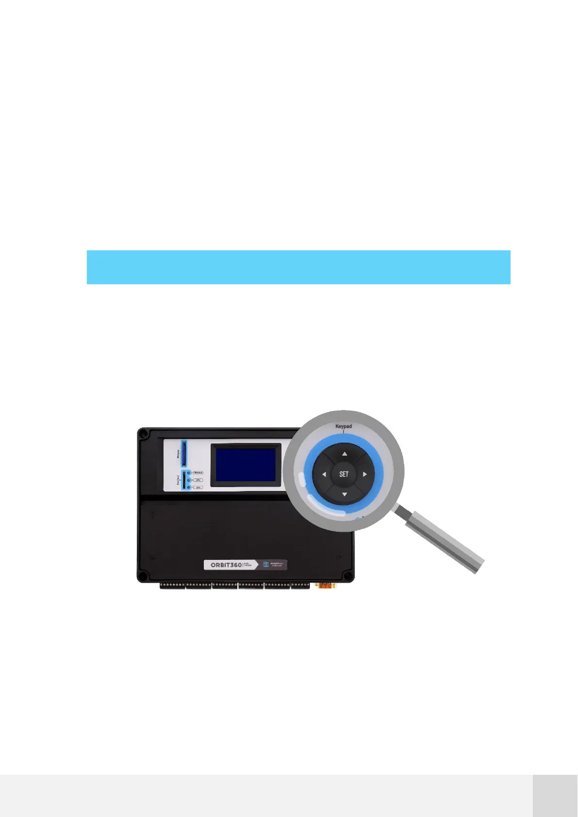 The Orbit 360 data logger features a keypad with five function keys: SET, UP, DOWN,