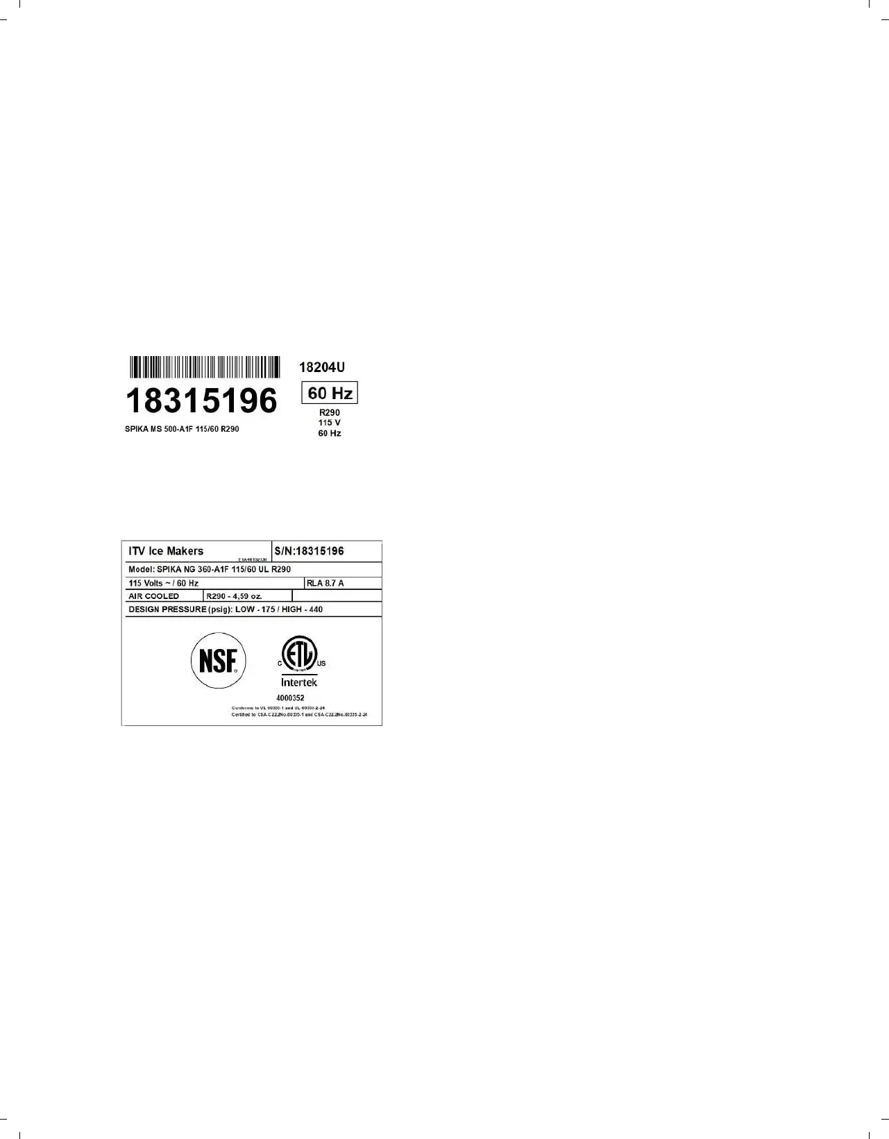• Warranty and serial number.