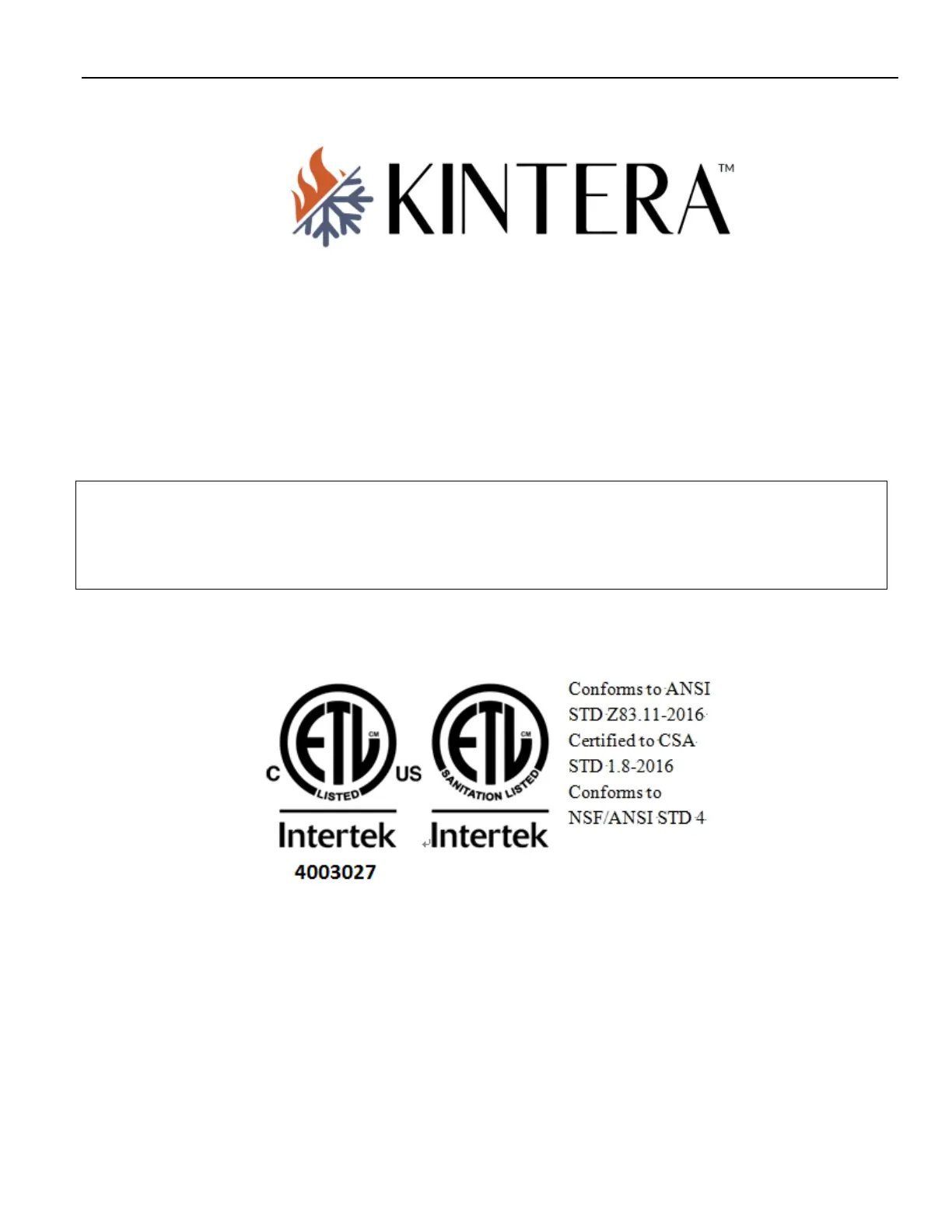 to extend the useful live of this unit. When service is needed, contact a Kintera Authorized