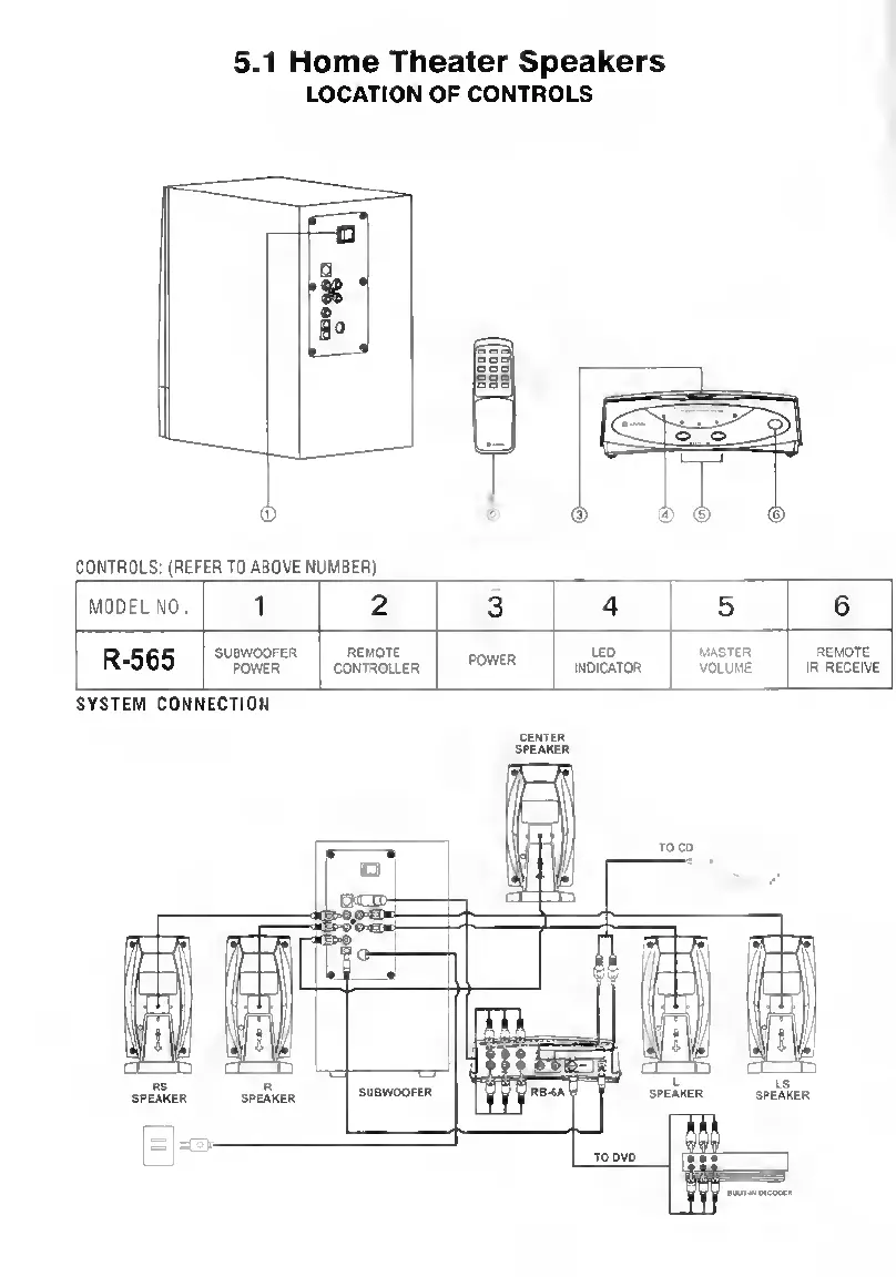 Kinyo R-565 - Location of Controls and System Connection; System Connection Diagram