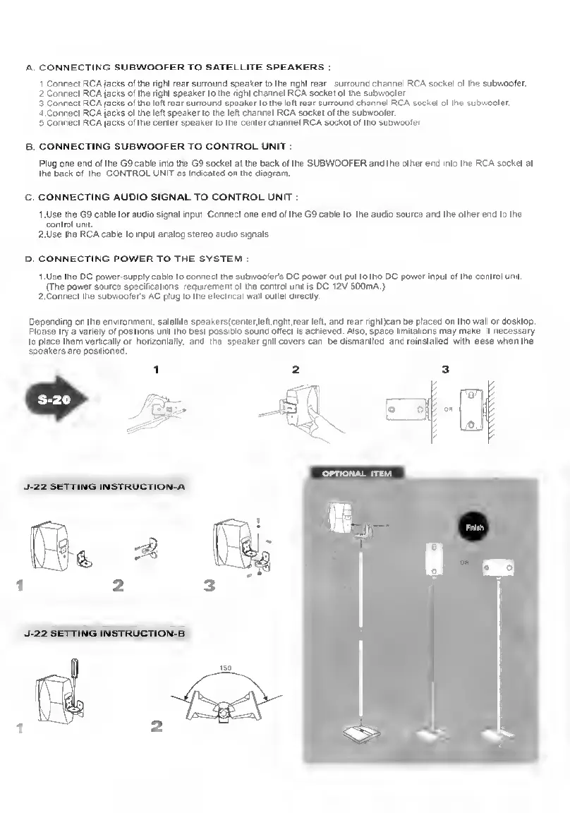 Kinyo R-565 - System Connection Procedures; Connecting Subwoofer to Satellite Speakers; Connecting Subwoofer to Control Unit; Connecting Audio Signal to Control Unit