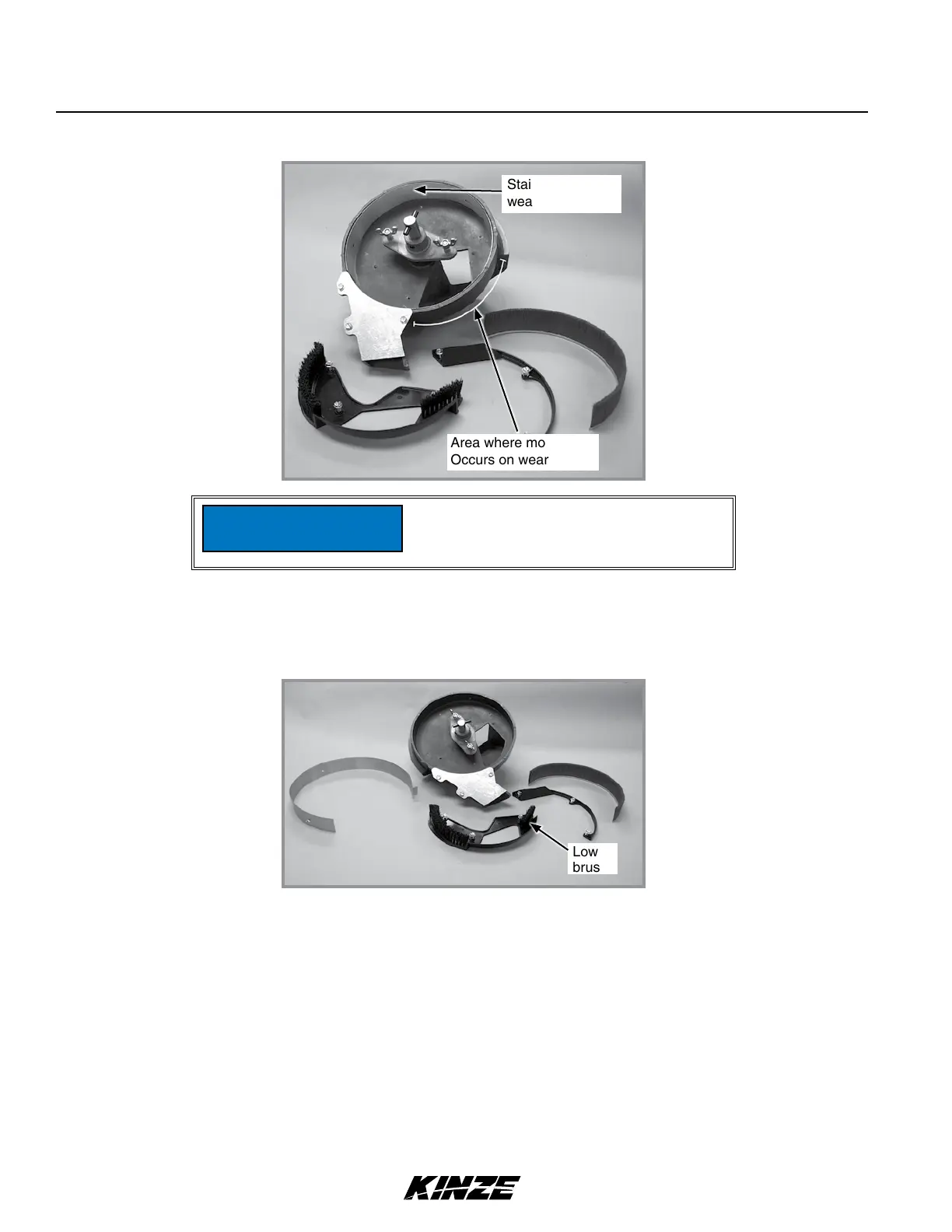 Estimated lower brush life expectancy is 240-800 acres (97-324 hectares) per row. Replace lower brush if bristles are