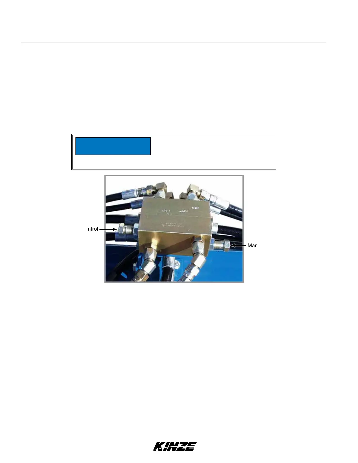 or marker control (dual valve) to raise and immediately return it to lower. This shifts the row marker control valve and