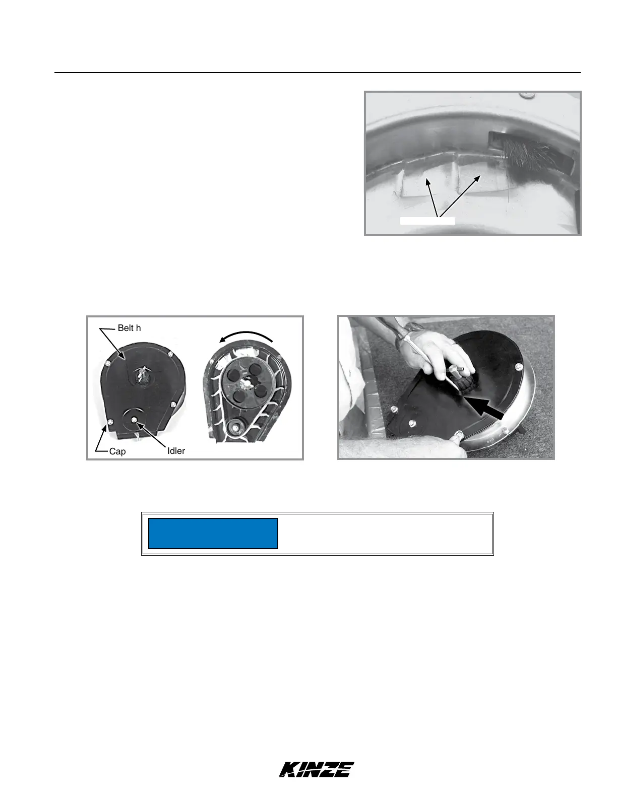 check idler alignment. Seed belt should “run” centered on idler or with only slight contact with belt housing or cover.