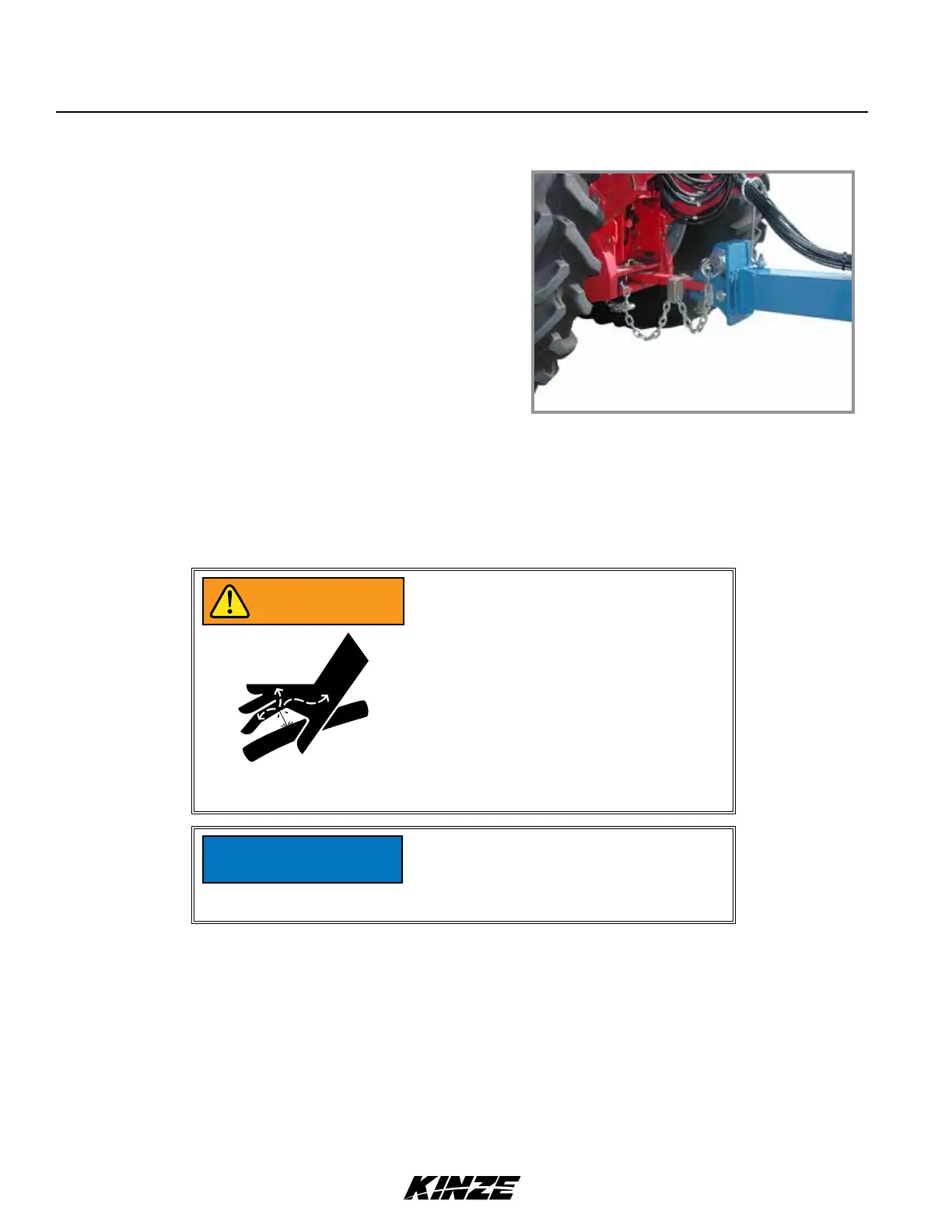 3. Safety chain must be used to keep planter and tractor connected in case of a hitch pin/drawbar failure. Attach
