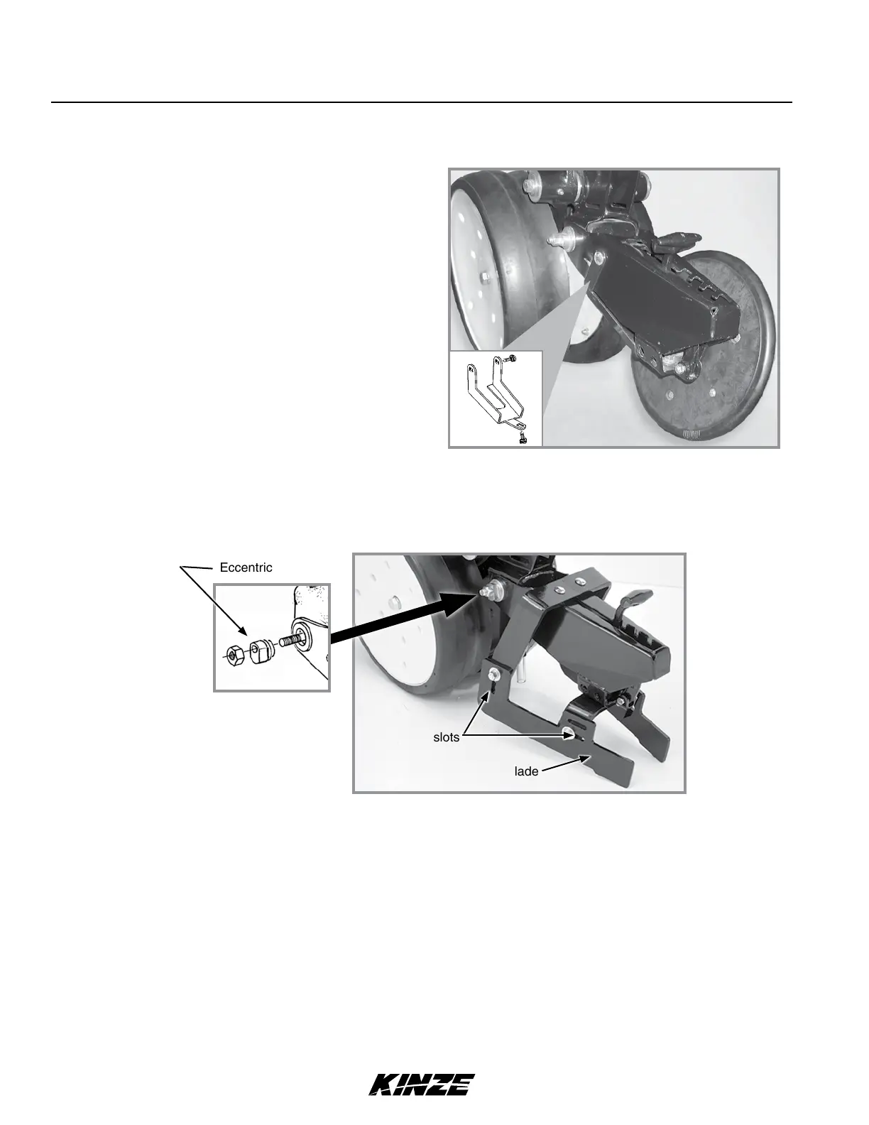 to loosen hardware attaching closing wheel arm to wheel arm stop. Use another ¾" wrench to turn eccentric bushings