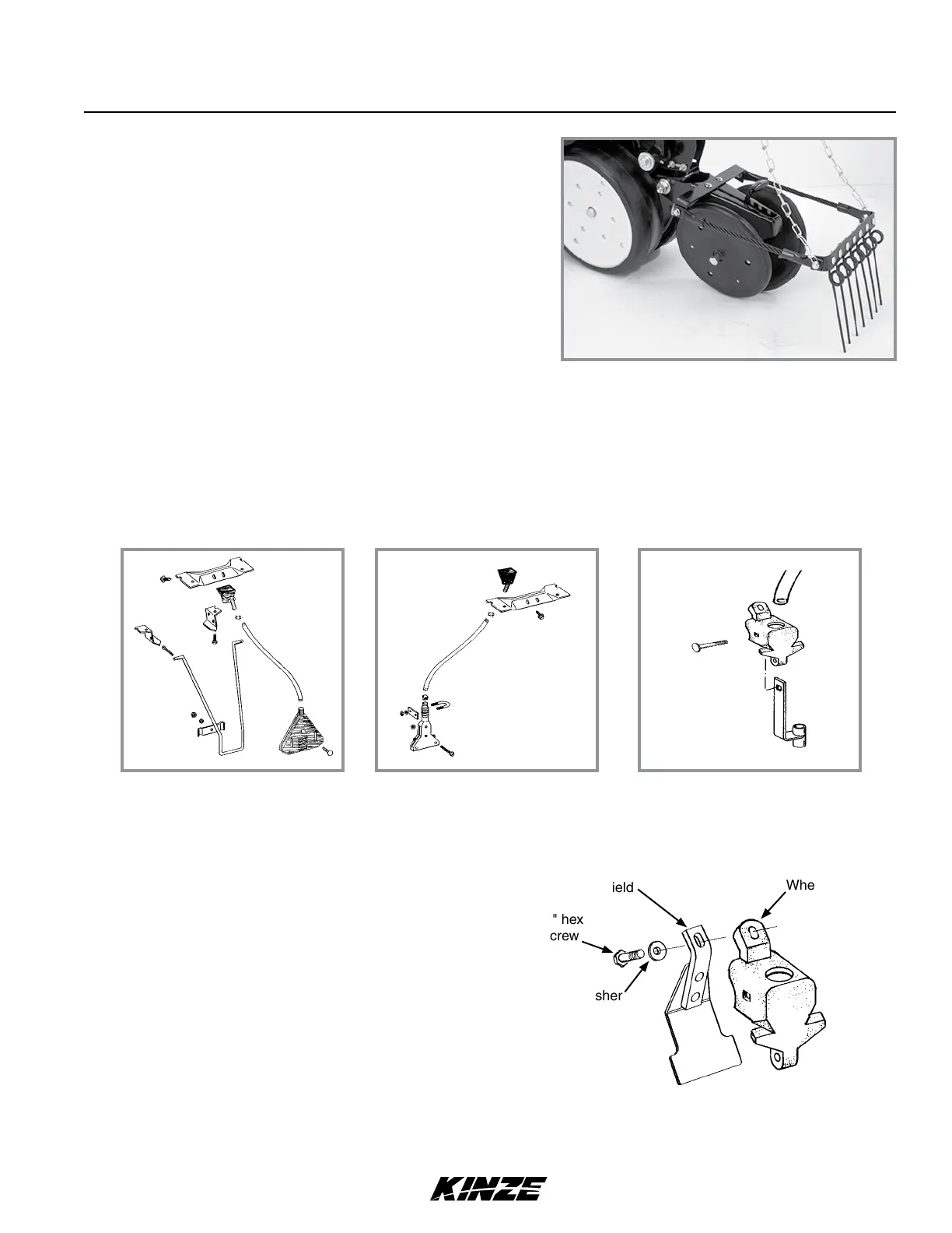 on underside of wheel arm stop to shield crop residue