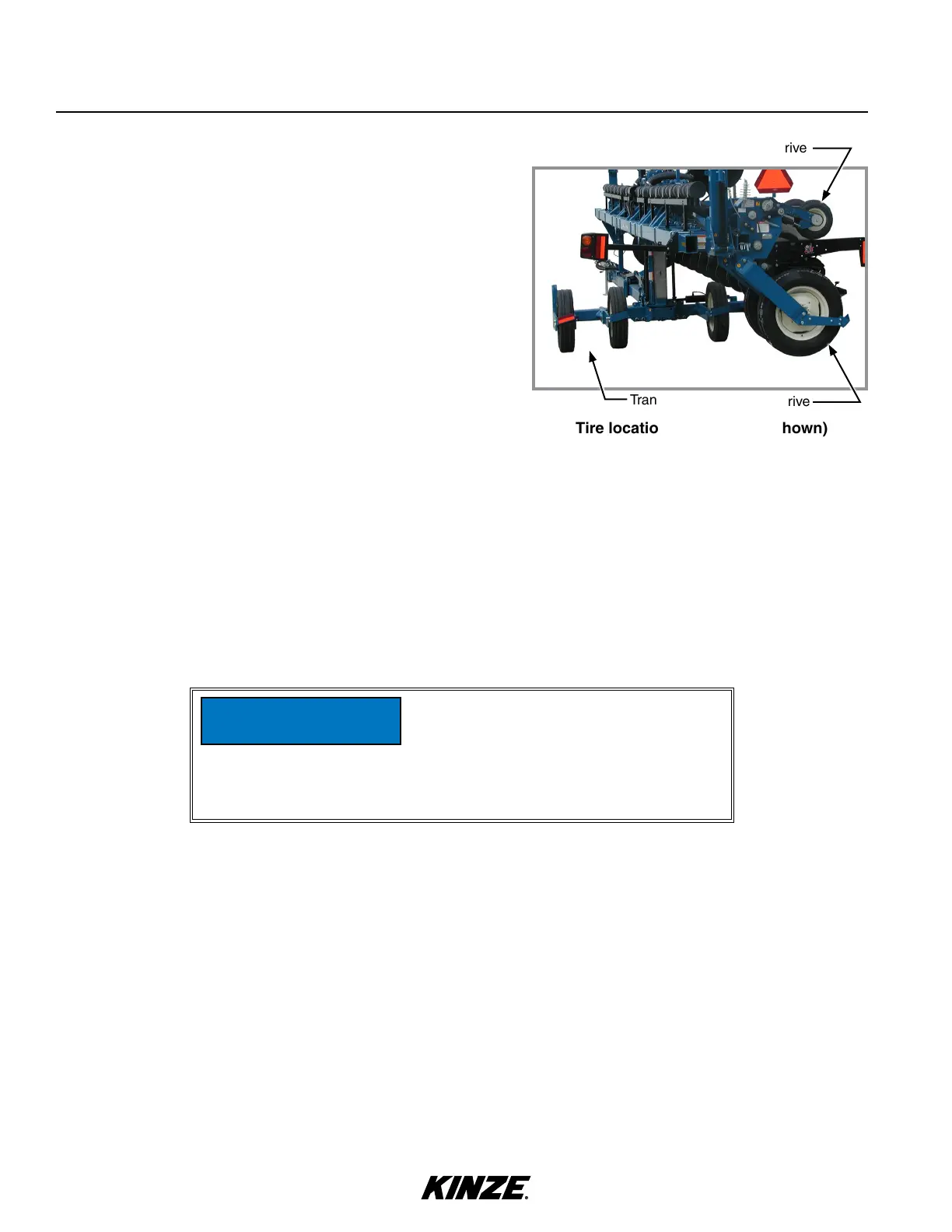 Ground drive wheel ⁄"- 18 lug nuts to 170 Nm.