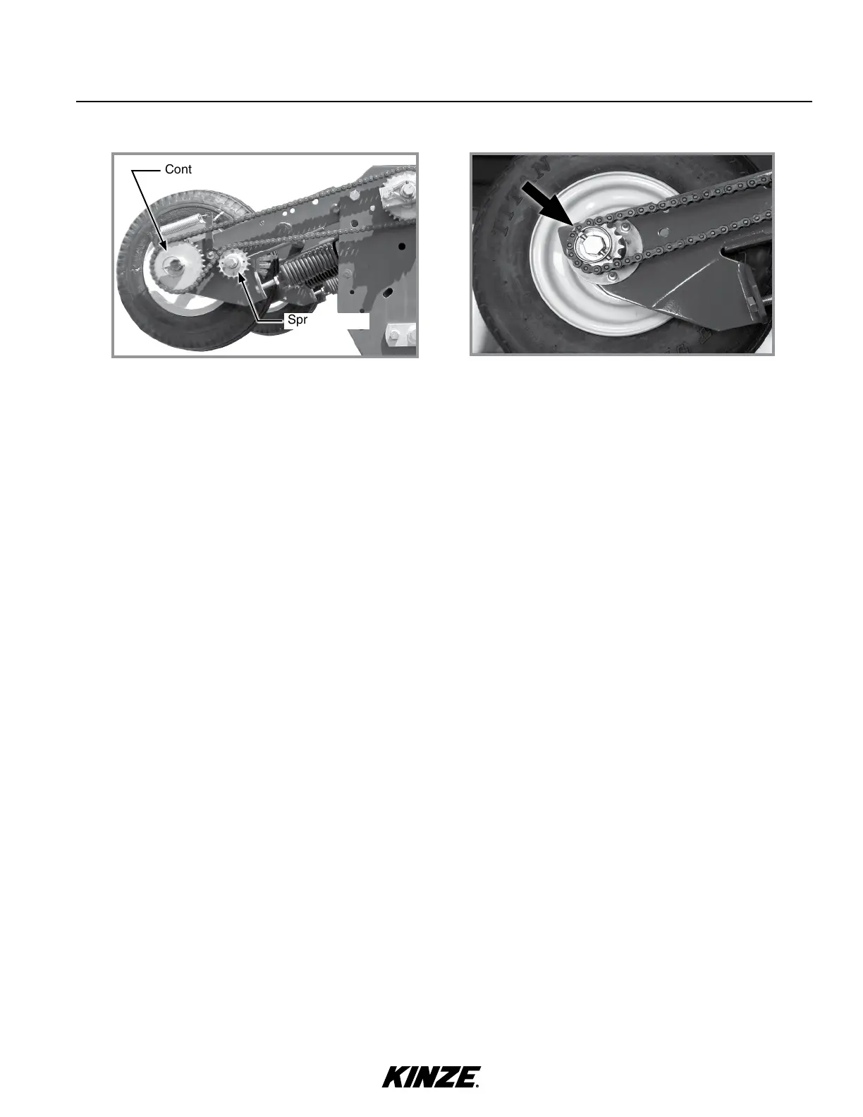 tooth sprocket on each contact wheel with a 15 tooth sprocket and shorter No. 40 110 pitch chain. This reduces