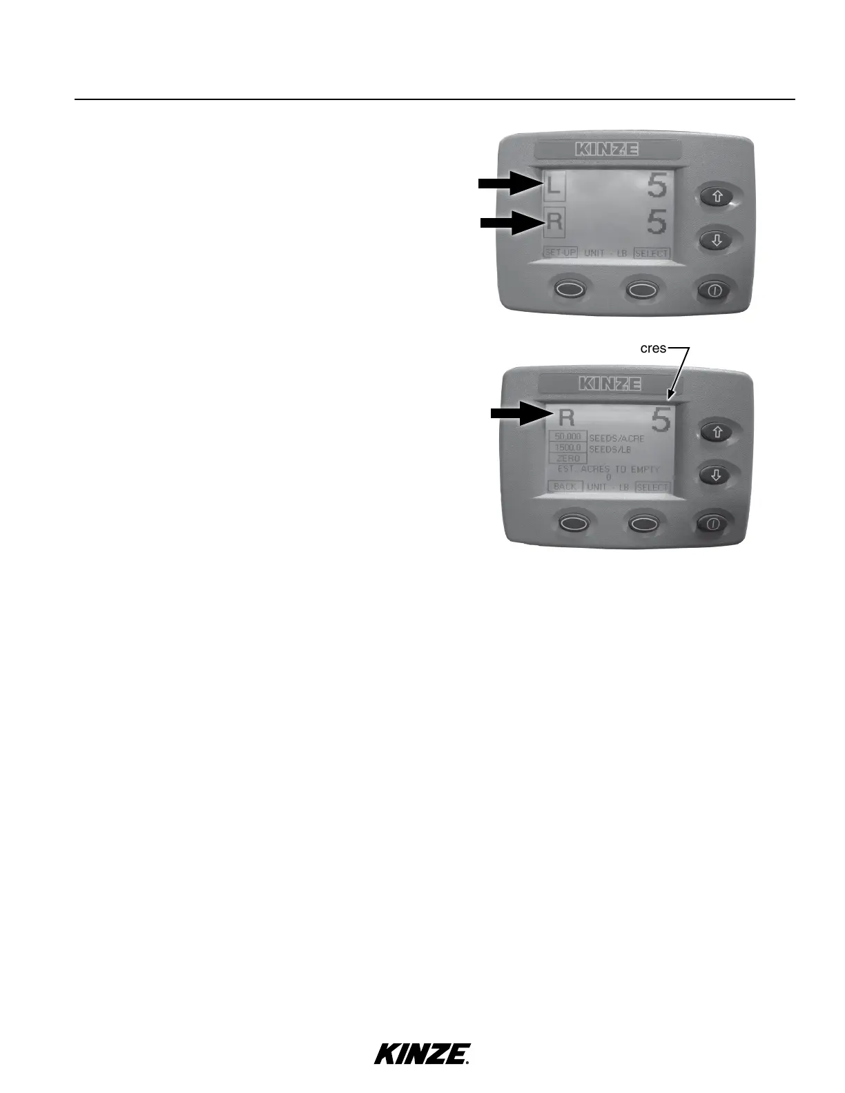 1. Highlight and select either L (left) or R (right) for the
