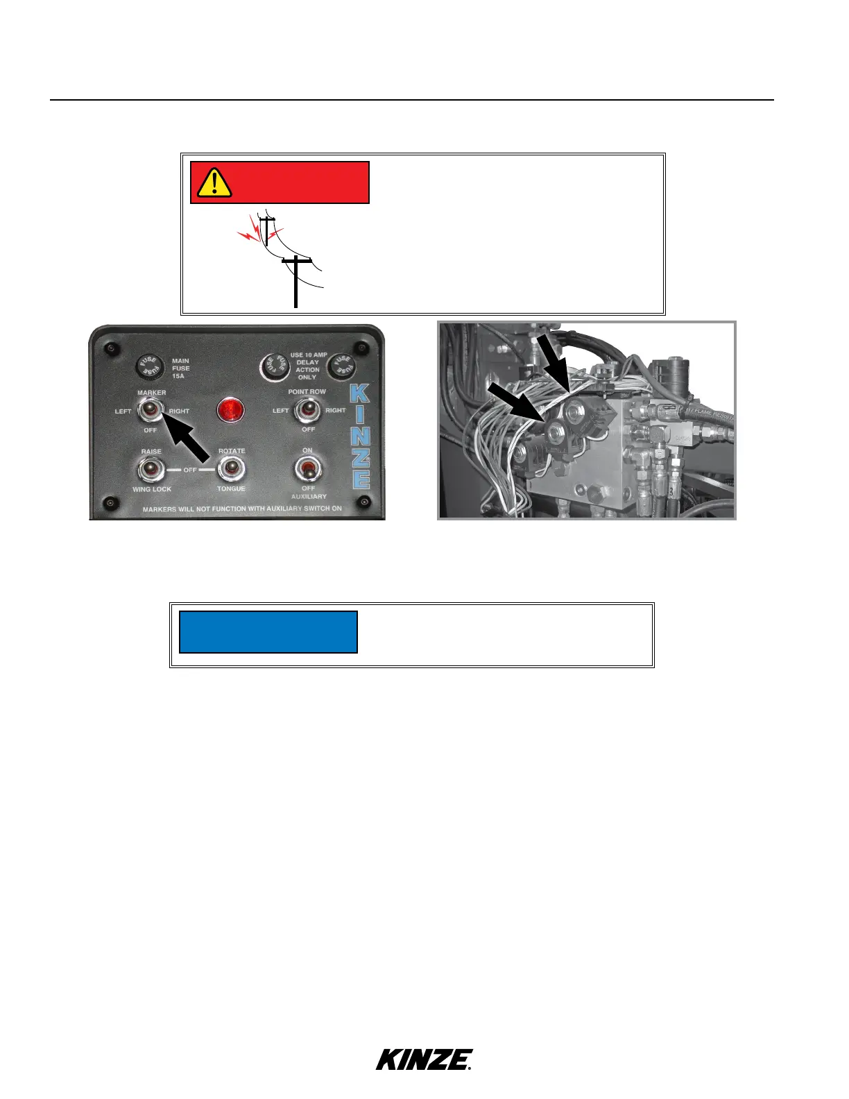 NOTE: Both row markers can be lowered by operating switch in each position and hydraulic control twice.