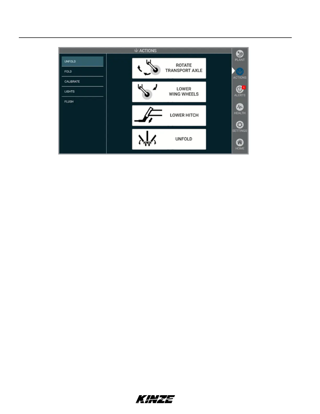 6. Press and hold “UNFOLD”. Operate proper hydraulic tractor control to move wing out, away from tractor.