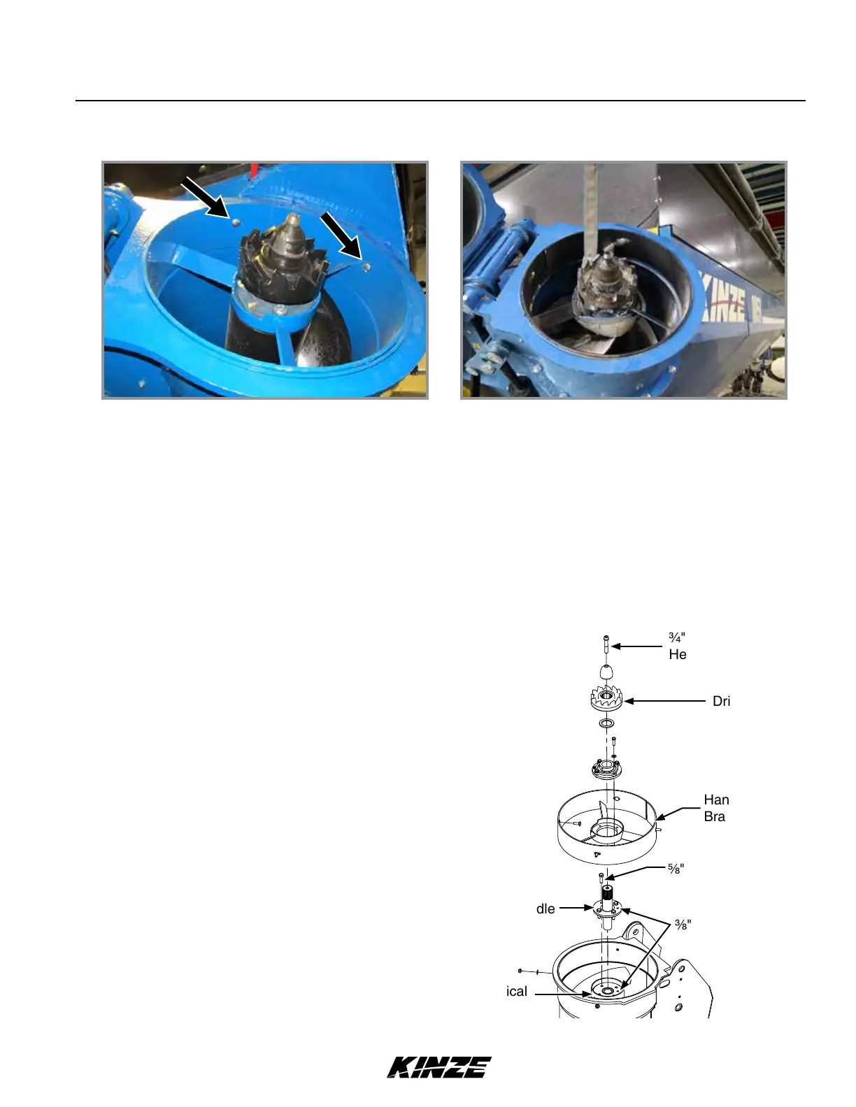 4. Remove ¾" x 5" cap screw at top of lower vertical auger and remove hanger bearing bracket components from