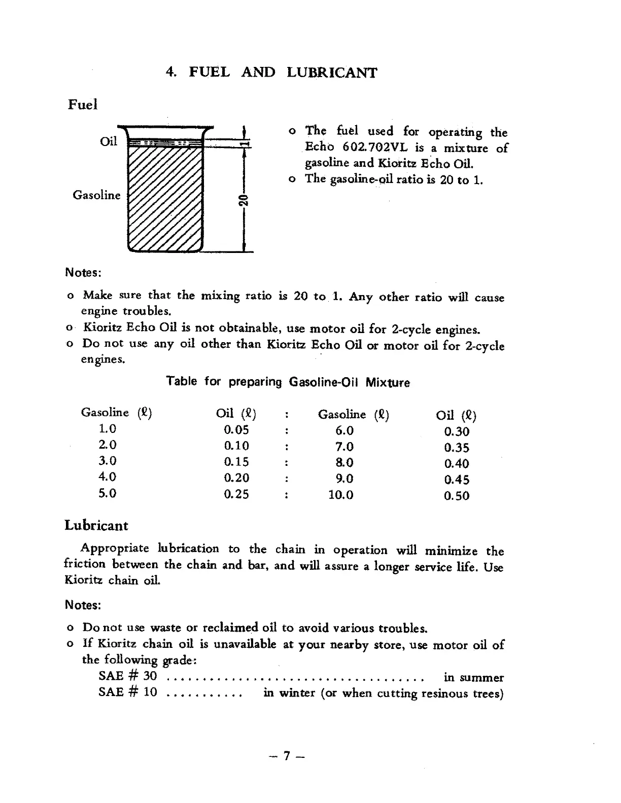 Kioritz Echo CS-602VL - FUEL AND LUBRICANT