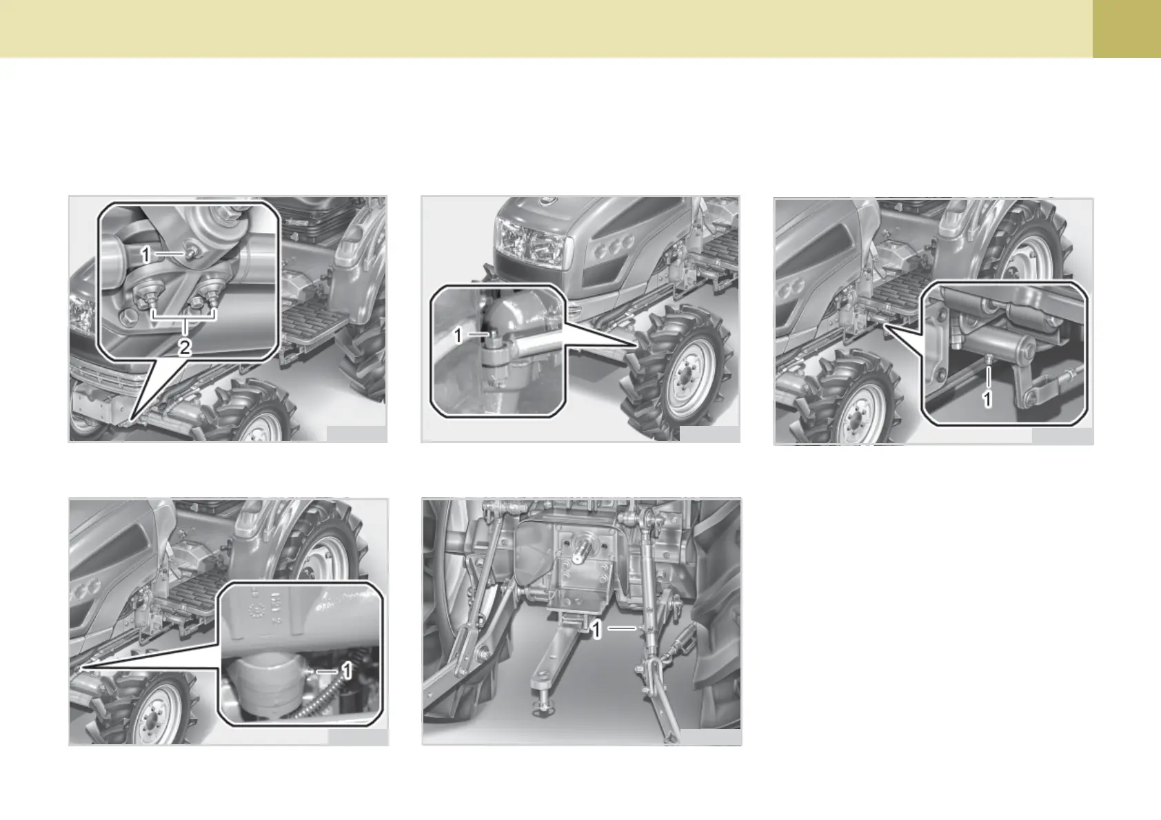 If your tractor is operated in extremely wet, muddy, or dusty conditions you should lubricate the fittings more often.
