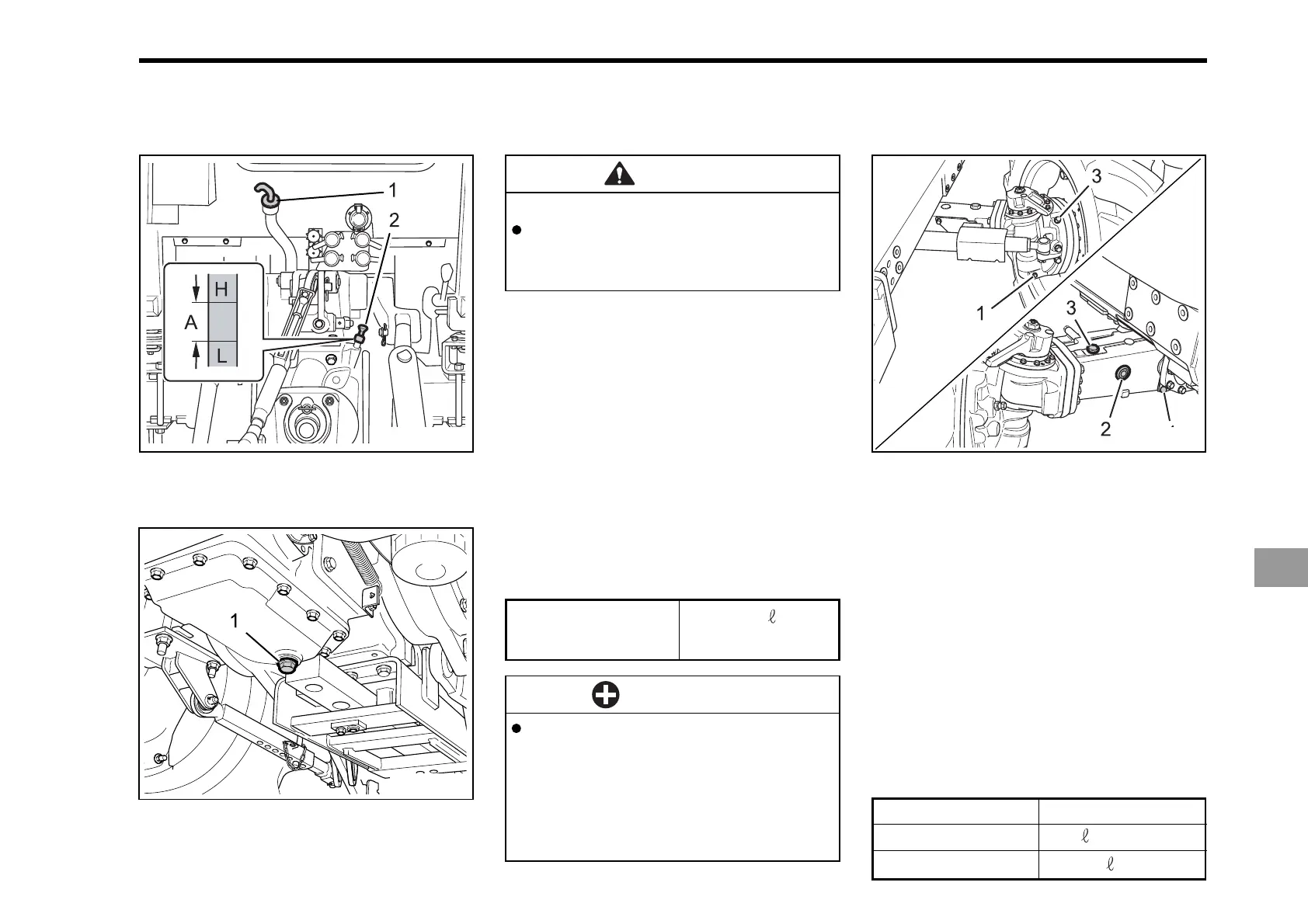 and left drain plugs and filling plug at