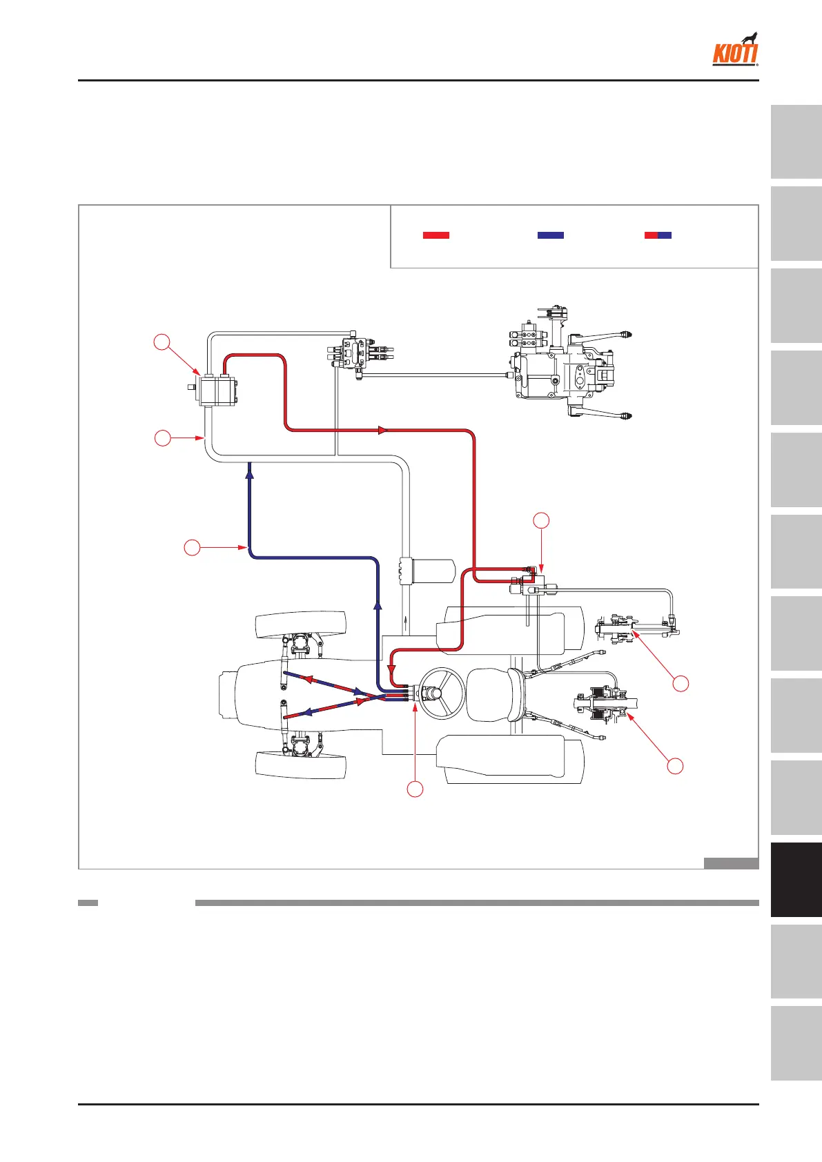 of PTO (3) or 4WD (4). Then, it is supplied to the steer-