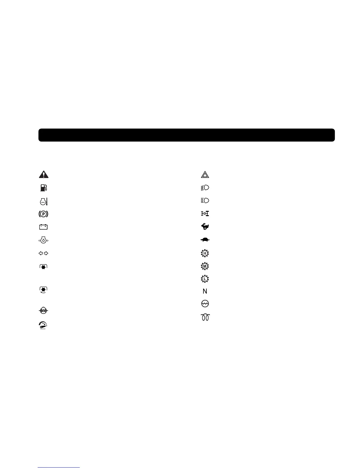 Various universal symbols have been used on the instruments and controls of your KIOTI tractor. Below is a list of the universal