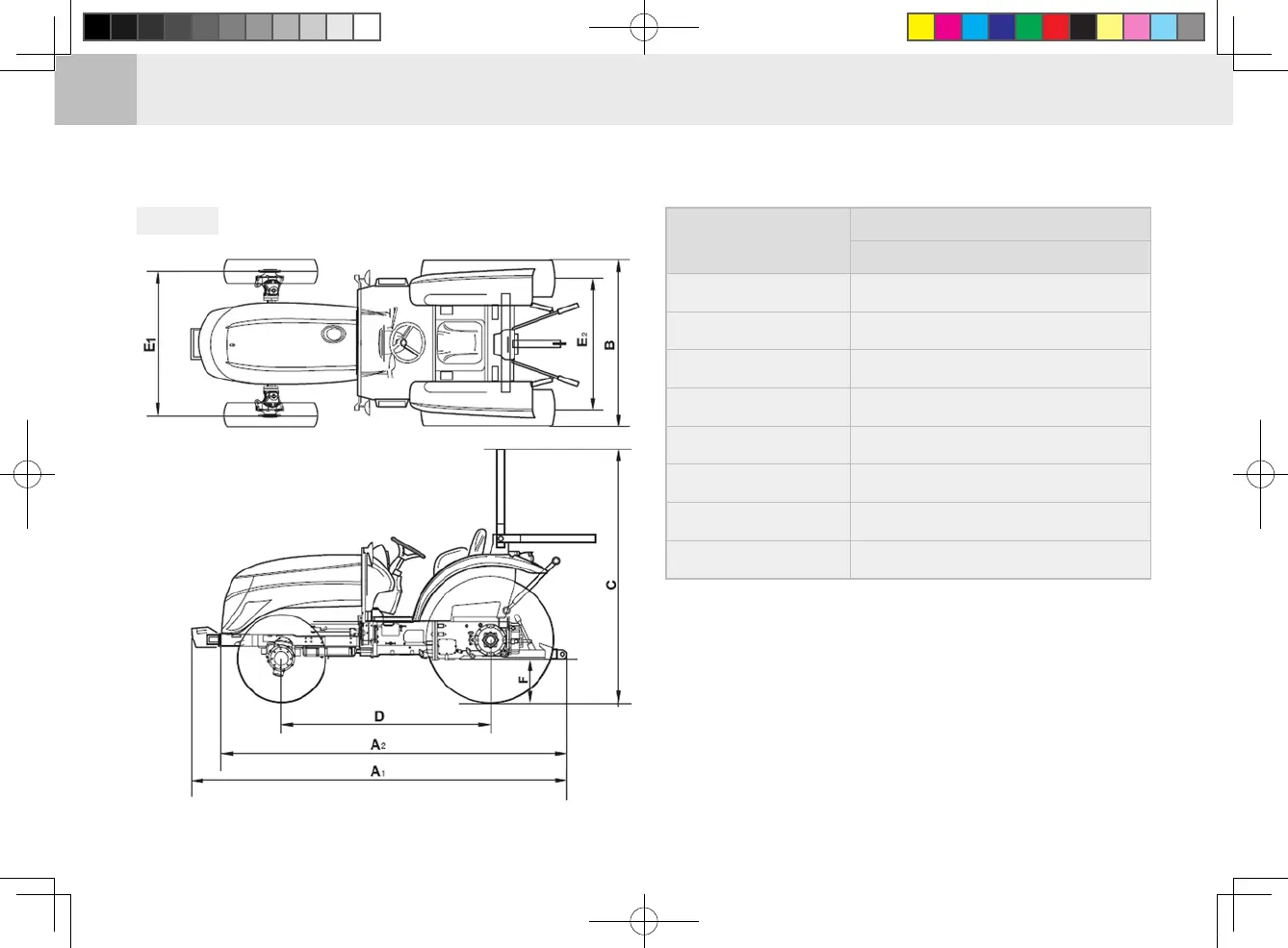 These dimensions are measured with the standard tires (AG) installed to the ROPS