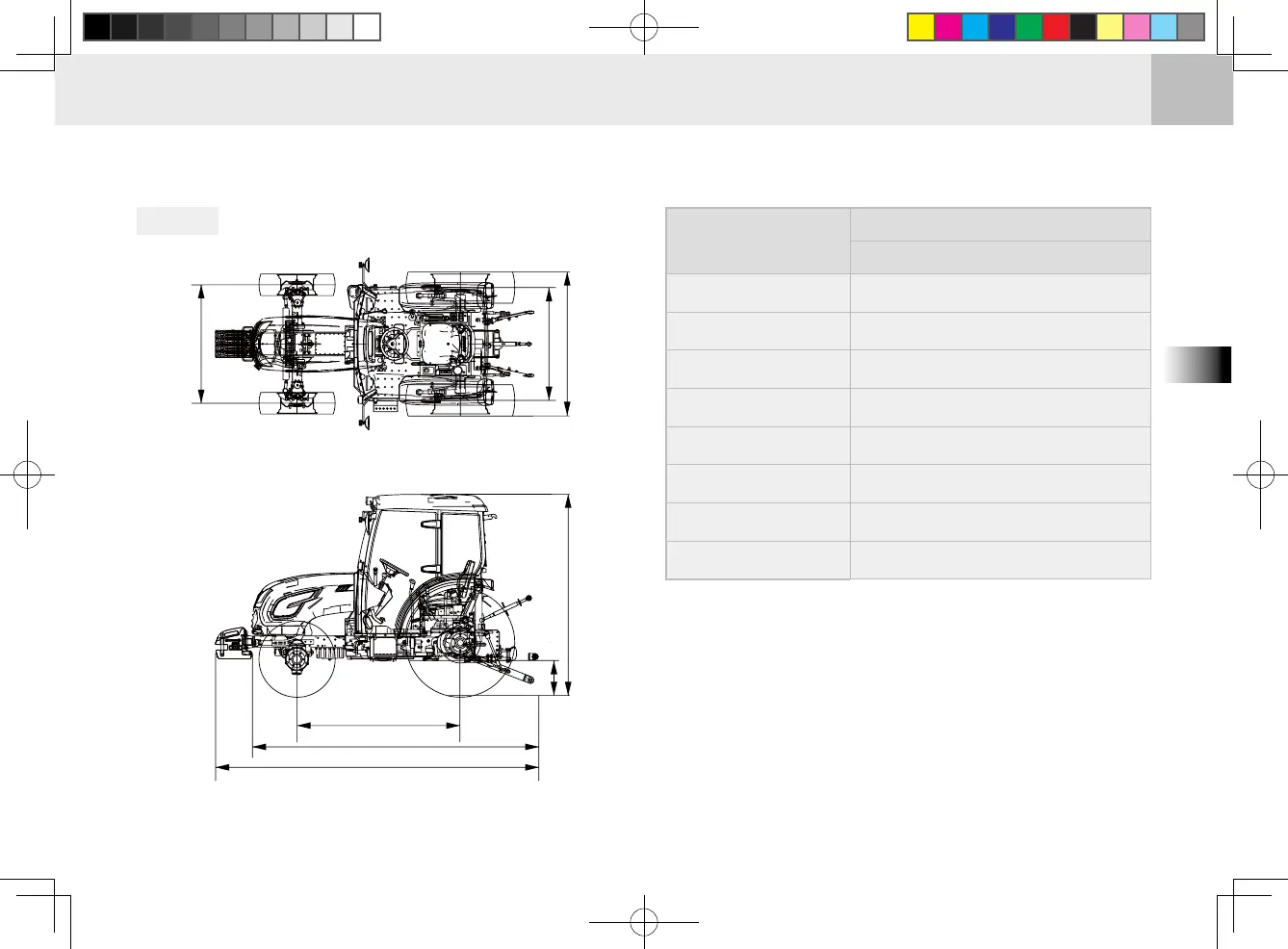 These dimensions are measured with the standard tires (AG) installed to the ROPS
