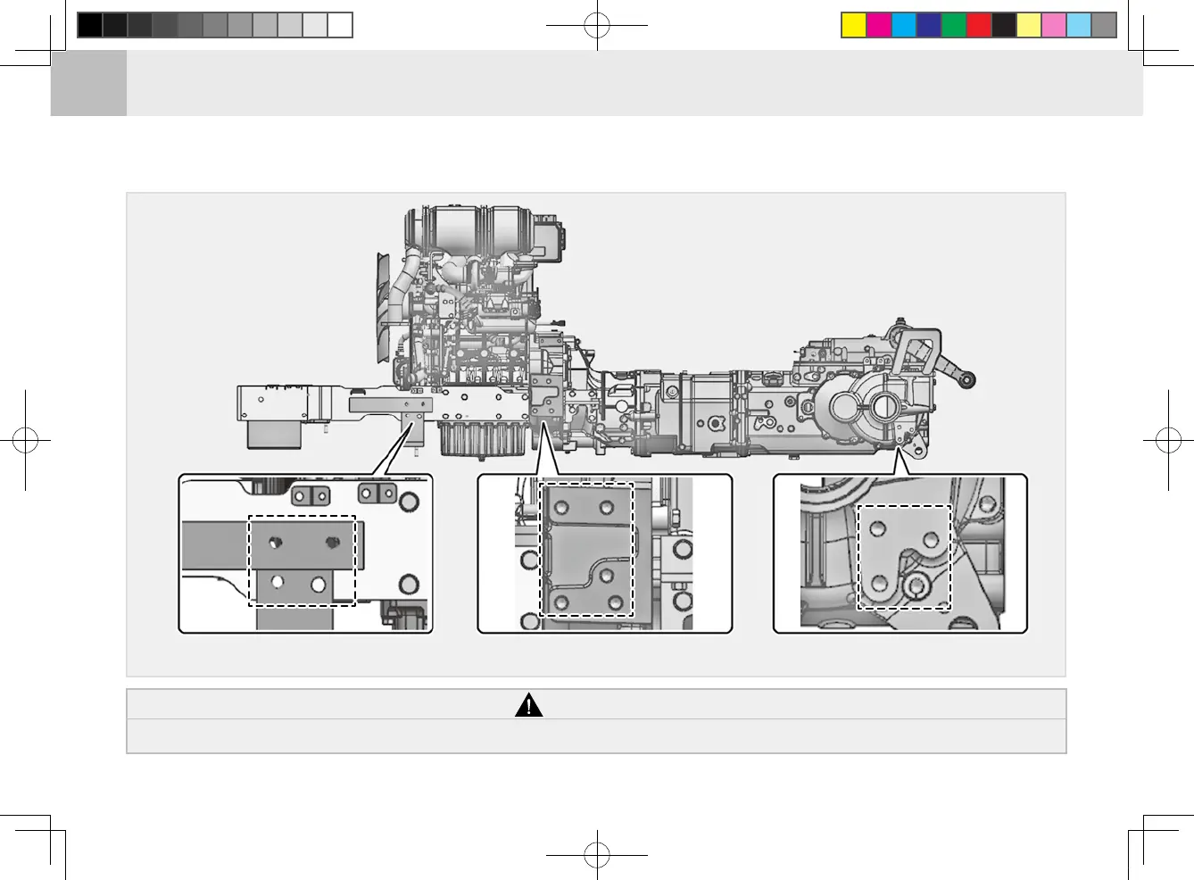 [Front axle frame] [Flywheel housing] [Rear axle & transmission]