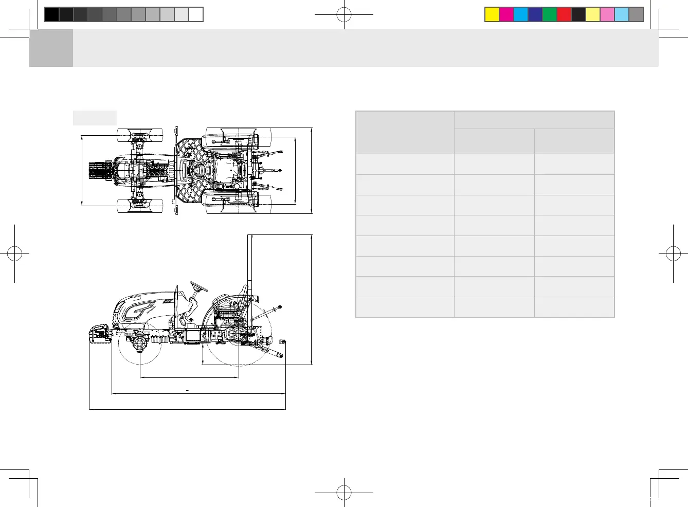 Overall length excluding weight and folded ROPS