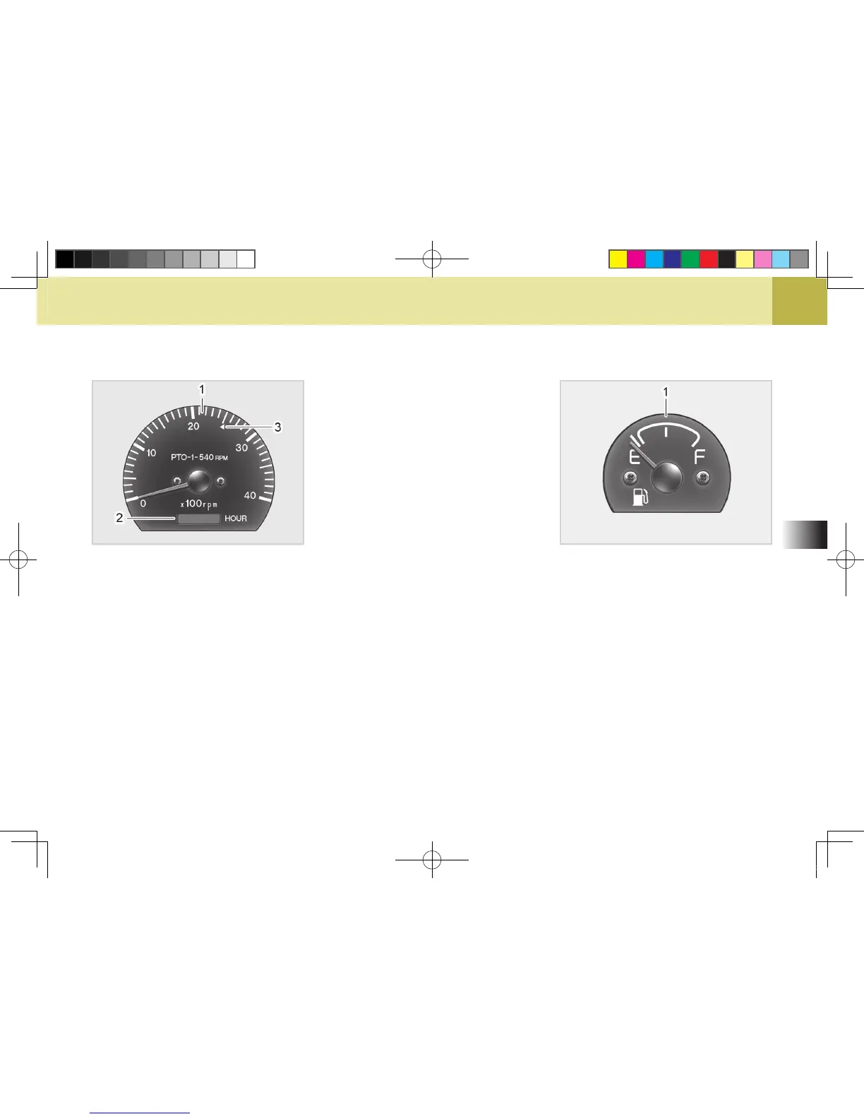 (1) Tachometer (2) Hourmeter Indicator