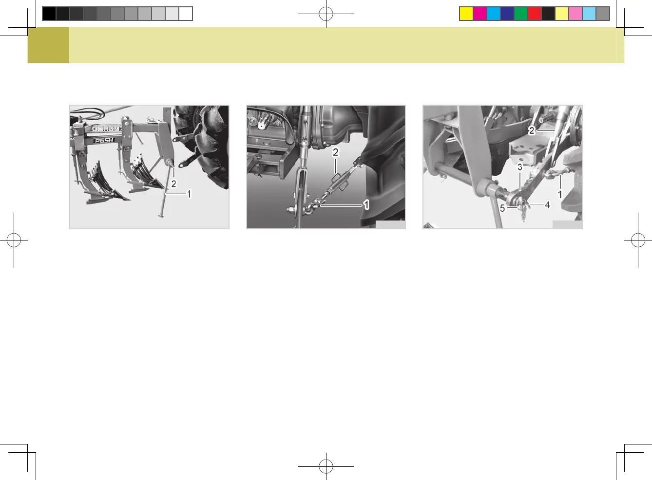 (1) Implement Support (2) Implement Pin (1) Check Link (2) Turn Buckle