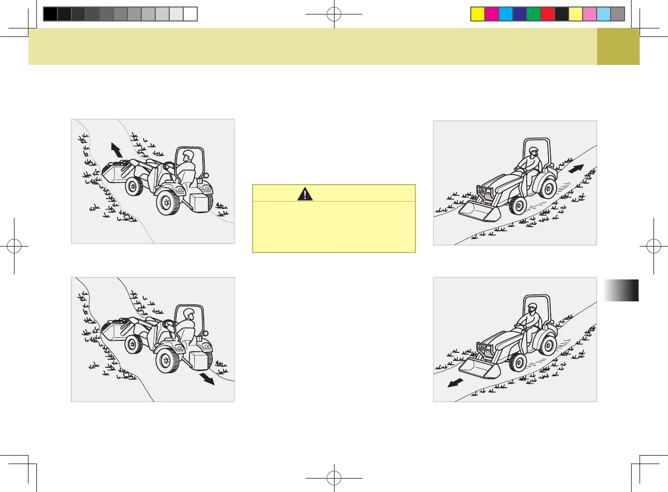 Kioti DS4510HS - DRIVING ON SLOPE; When loaded bucket and rear ballast are installed; When unloaded bucket and rear ballast are installed