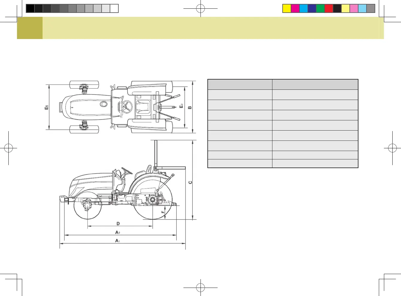 These dimensions are measured with the standard tires (AG) installed to the ROPS model tractor.