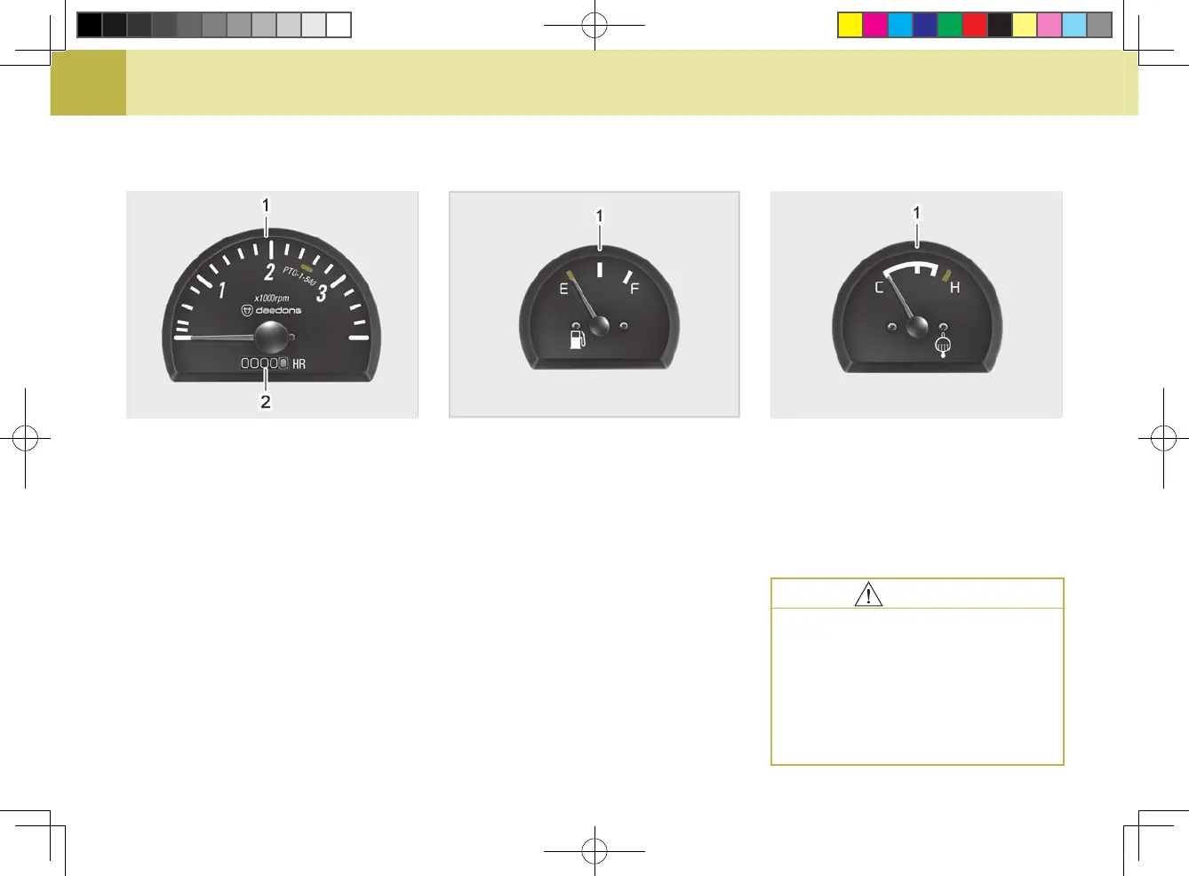 (1) Tachometer (2) Hourmeter