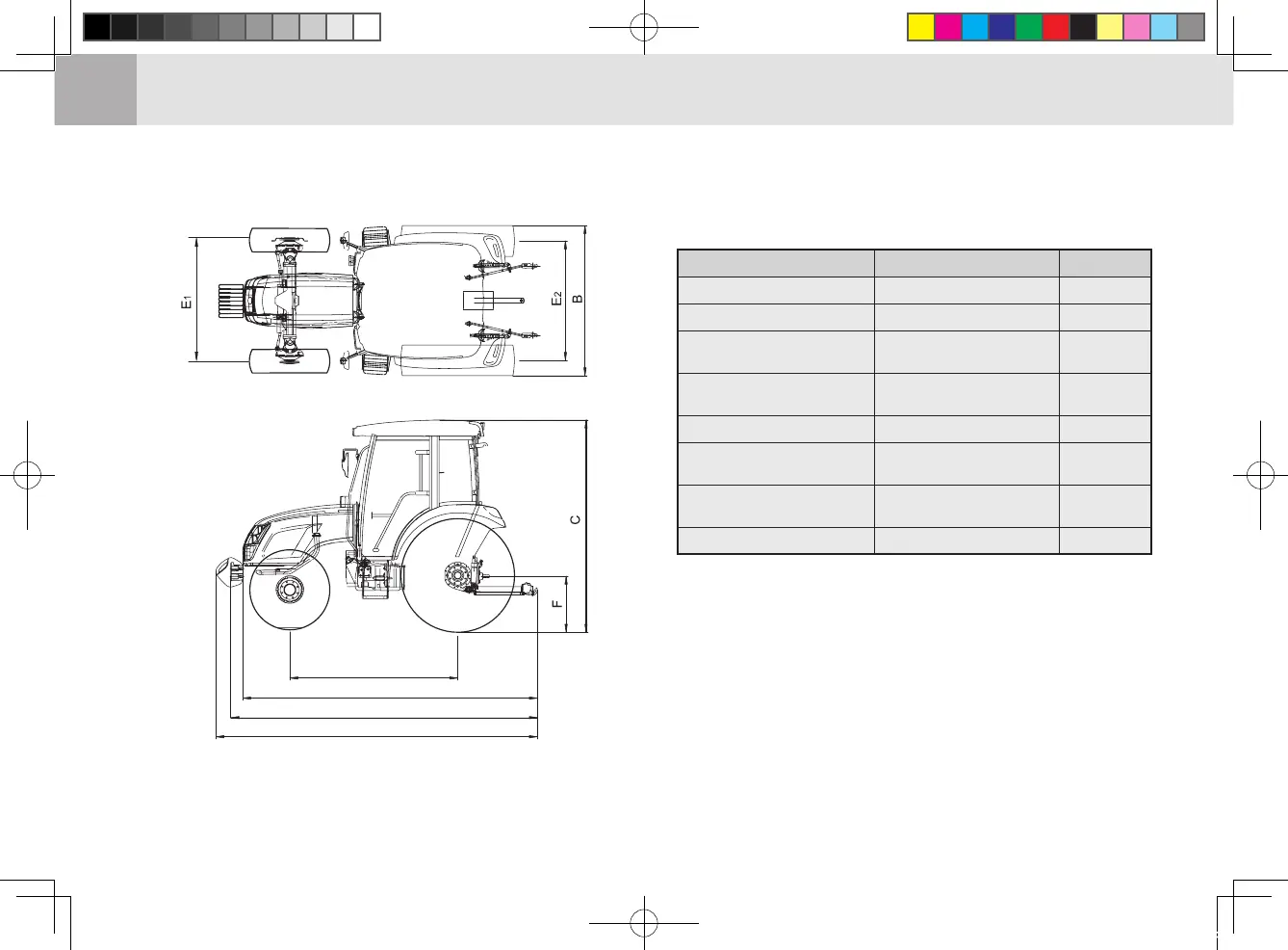These dimensions are measured with standard tires (AG) installed on the CABIN model tractor.