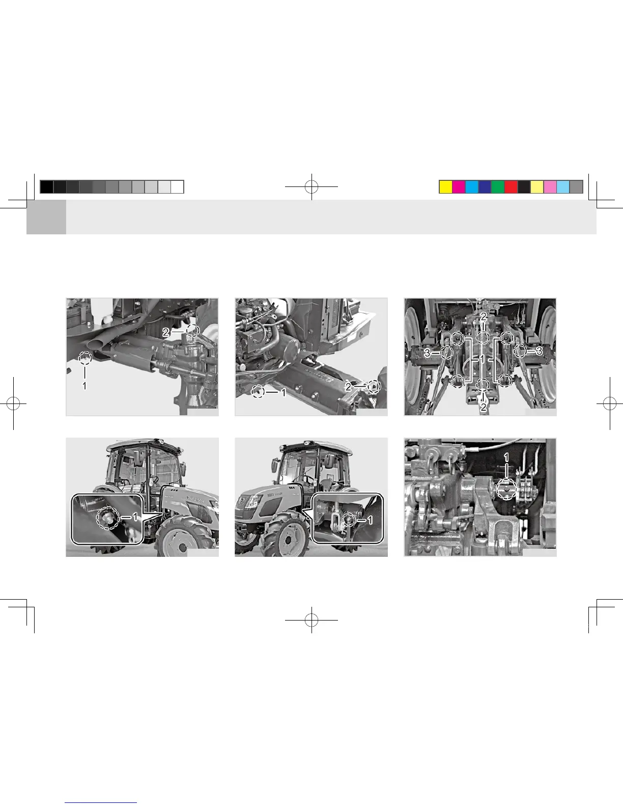(2) Top link (upper/lower) (3) Lift rod (LH/RH)