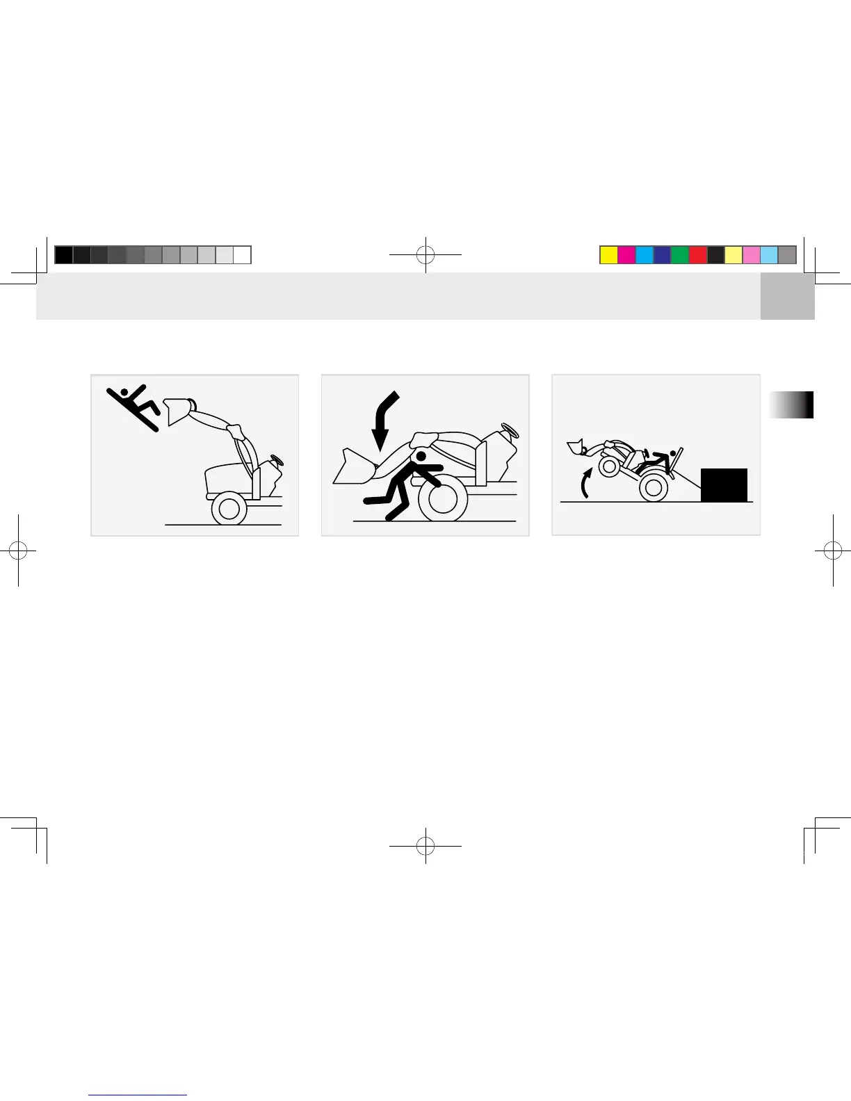 2. Do not stand under the lifted loader
