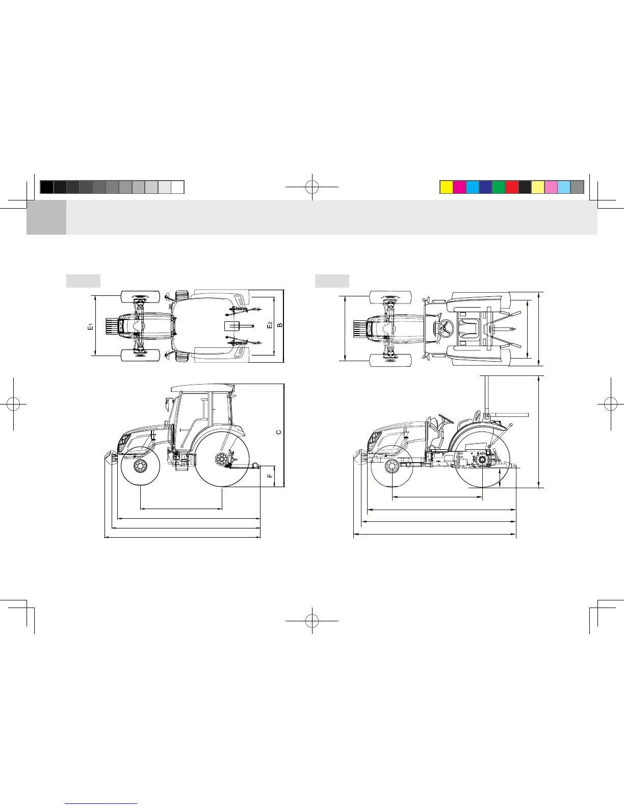 These dimensions are measured with standard tires (AG) installed on the CABIN model tractor.