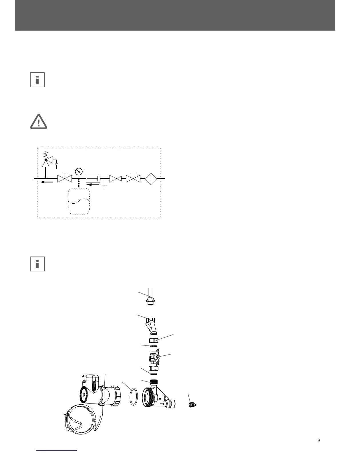 When using different piping materials take care of the installation sequence to avoid electrochemical corrosion